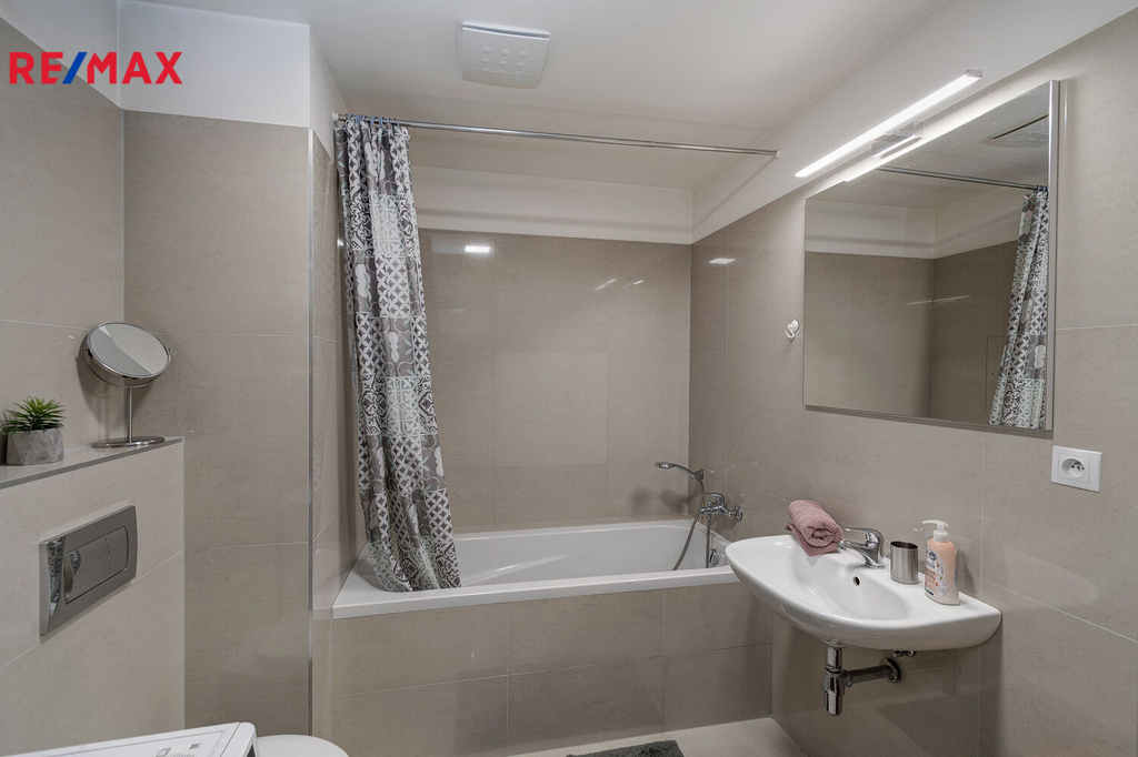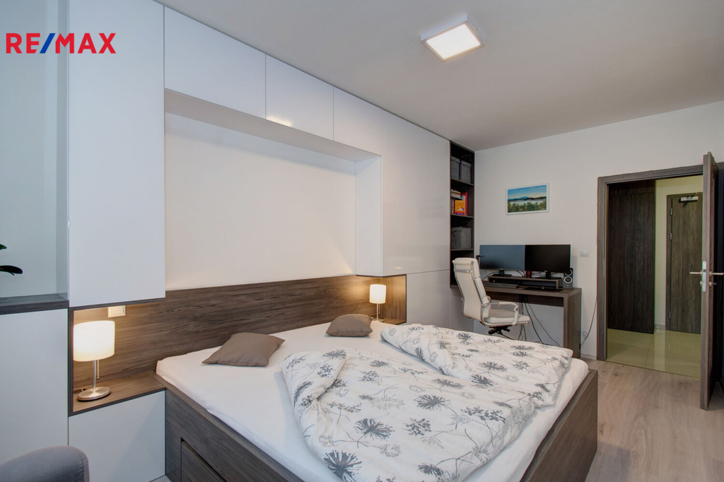 V celém bytě jsou použity nadstandardní materiály, vestavný nábytek, kvalitní vinylová podlaha.