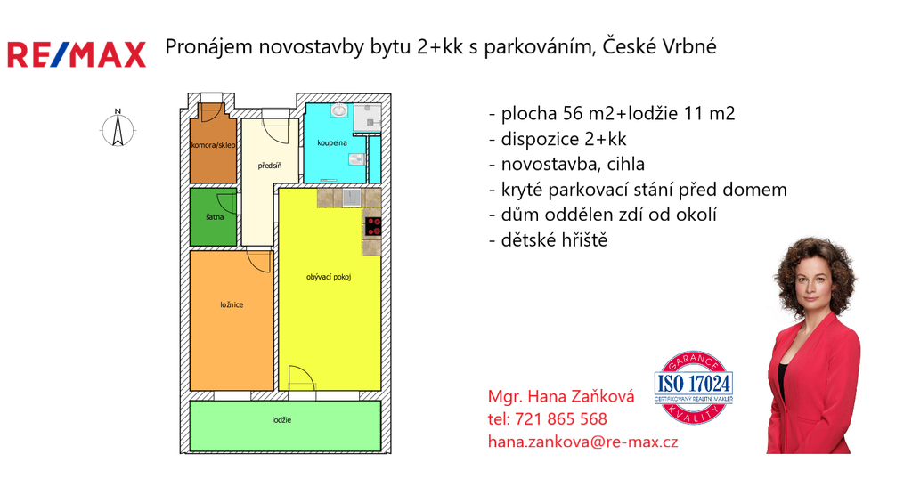 Pronájem bytu 2+kk s parkováním a lodžií, 56 m2, novostavba, České Vrbné