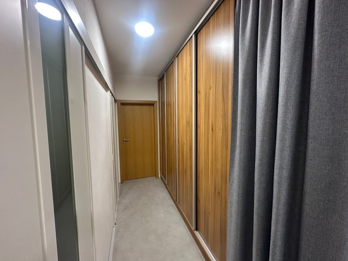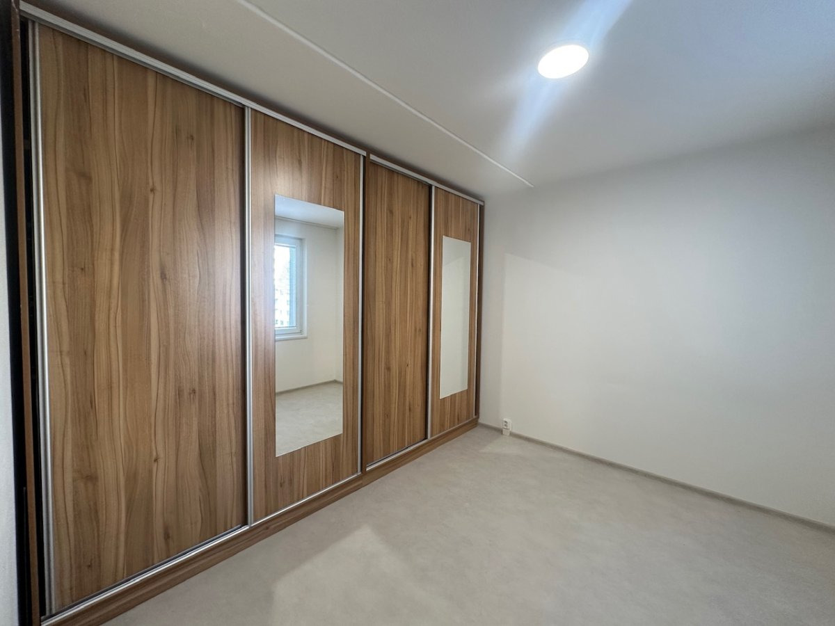 Interiér nabízí praktickou dispozici 3+1, ideální pro pár i rodinu. Byt je částečně vybavený. V ložnici se nachází velká vestavěná skříň, další vestavěná skříň je umístěna v prostorné, dlouhé chodbě. V dětském pokoji / pracovně je rohový psací stůl s úložným prostorem a vestavěná skříň. V obývacím pokoji je rohová sedací souprava (lze po domluvě vyklidit).