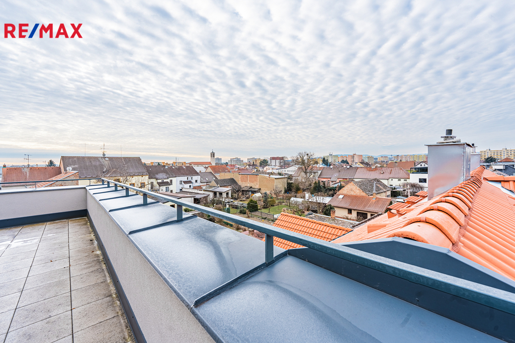 Terasa je orientovaná na jihozápad a kromě nádherného výhledu do okolí nabízí díky své rozloze 56 m2 obrovské možnosti využití. Nabízí se zde možnost prostorné odpočinkové zóny s lehátky na opalování, posezením a grilem. Své místo si tu jistě najde také okrasná zeleň nebo velké truhlíky s bylinkami. Dále třeba menší bazén, sauna či venkovní posilovna.