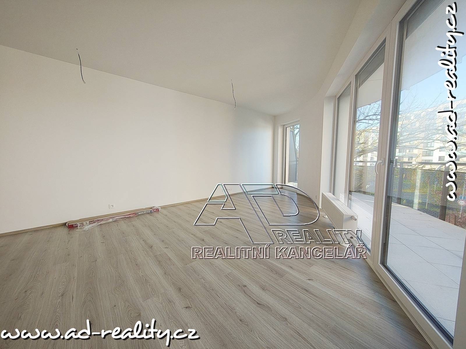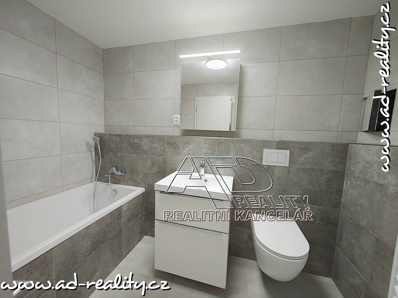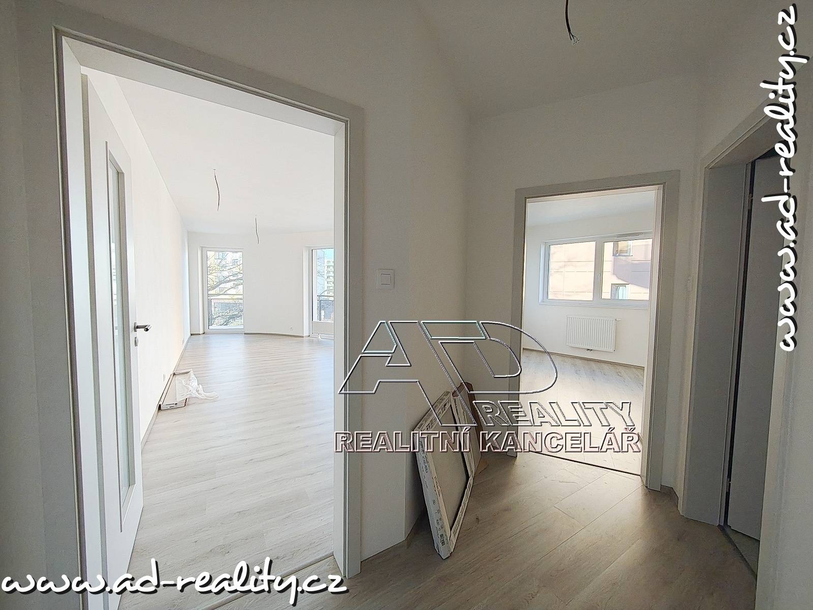 Byt bude dokončený leden/únor_2026 (dosud nebydlená novostavba). Podlahy plovoucí laminátové / vinyl a keramická dlažba, v koupelně vana, závěsné WC. Přípojka pračky je umístěná v předsíni.