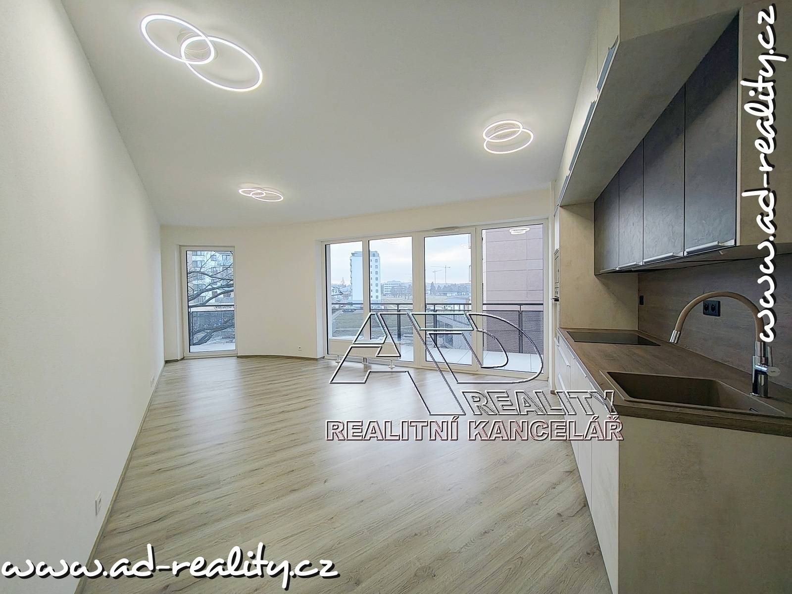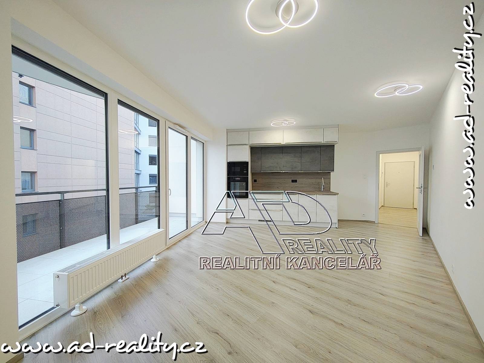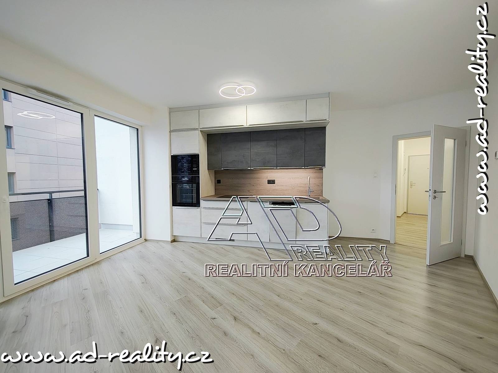 Byt je k dispozici včetně základního vybavení – kuchyňská linka, elektrická indukční varná deska, vestavěná trouba, vestavěná myčka nádobí, digestoř.