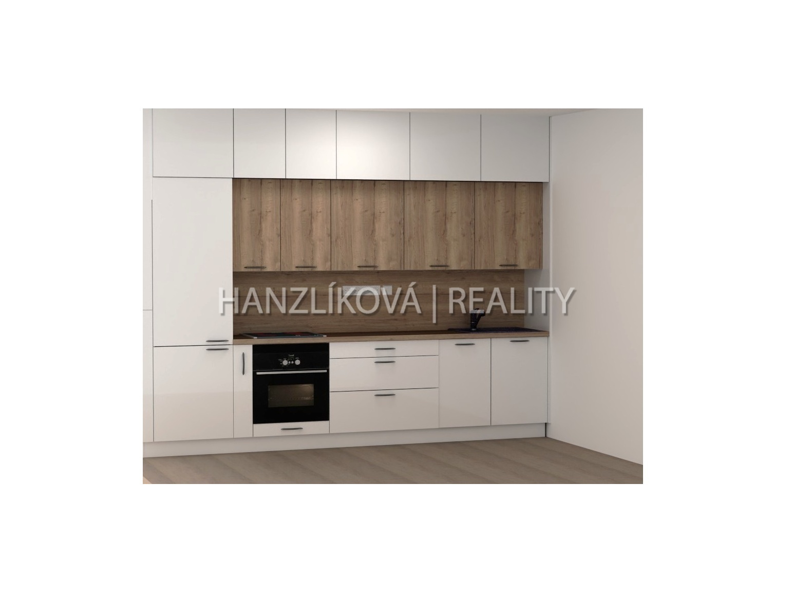 Byt bude zařízen kuchyňkou linkou včetně všech spotřebičů a vestavnou skříní v předsíni.