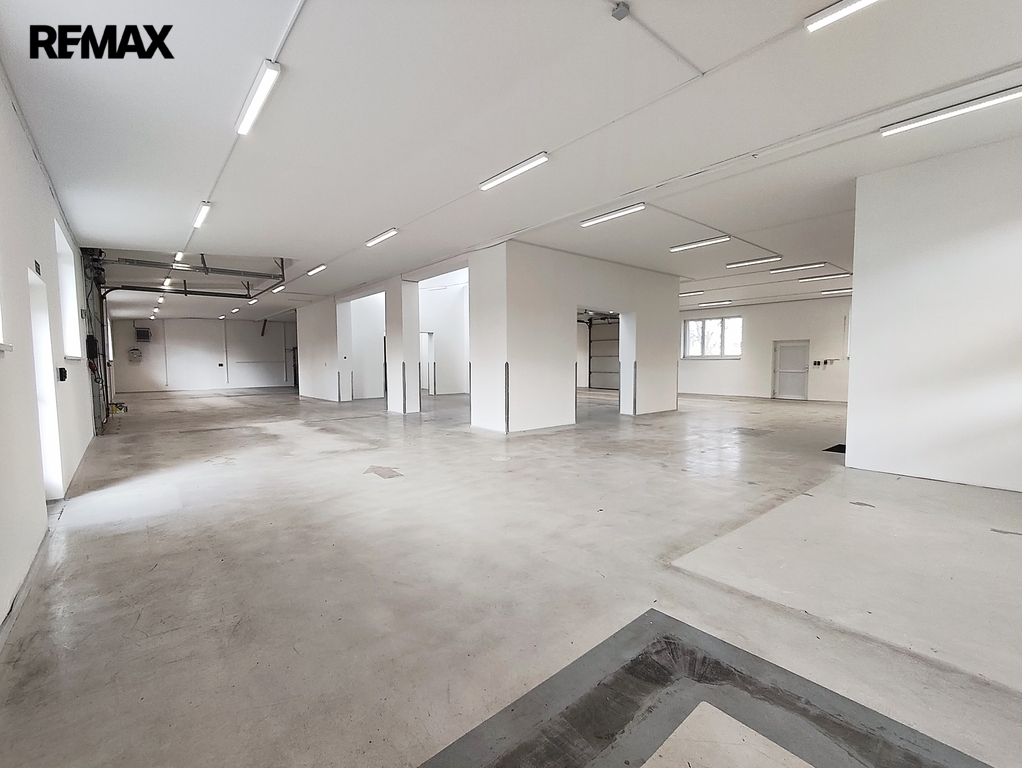 Zděná hala o výměře cca 520m2 je tvořena velkým prostorem, výrobním či prodejním, se středovými příčkami. Zvlášť je oddělena kancelář, sociální zařízení, úklidová místnost a kuchyňka. Vstup do haly je řešen z úrovně terénu - vjezd pro zásobování (rolovací průmyslová vrata) + vstupní dveře a dále z rampy – také rolovací průmyslová vrata a vstupní dveře. Další vstup je z čela budovy dveřmi do kanceláře a další sklopná vrata spojují tuto budovu s vedlejší ocelovou halou. Podlahová krytina je betonová stěrka s nátěrem. Okna a dveře v plastu. Vytápění elektrické.
