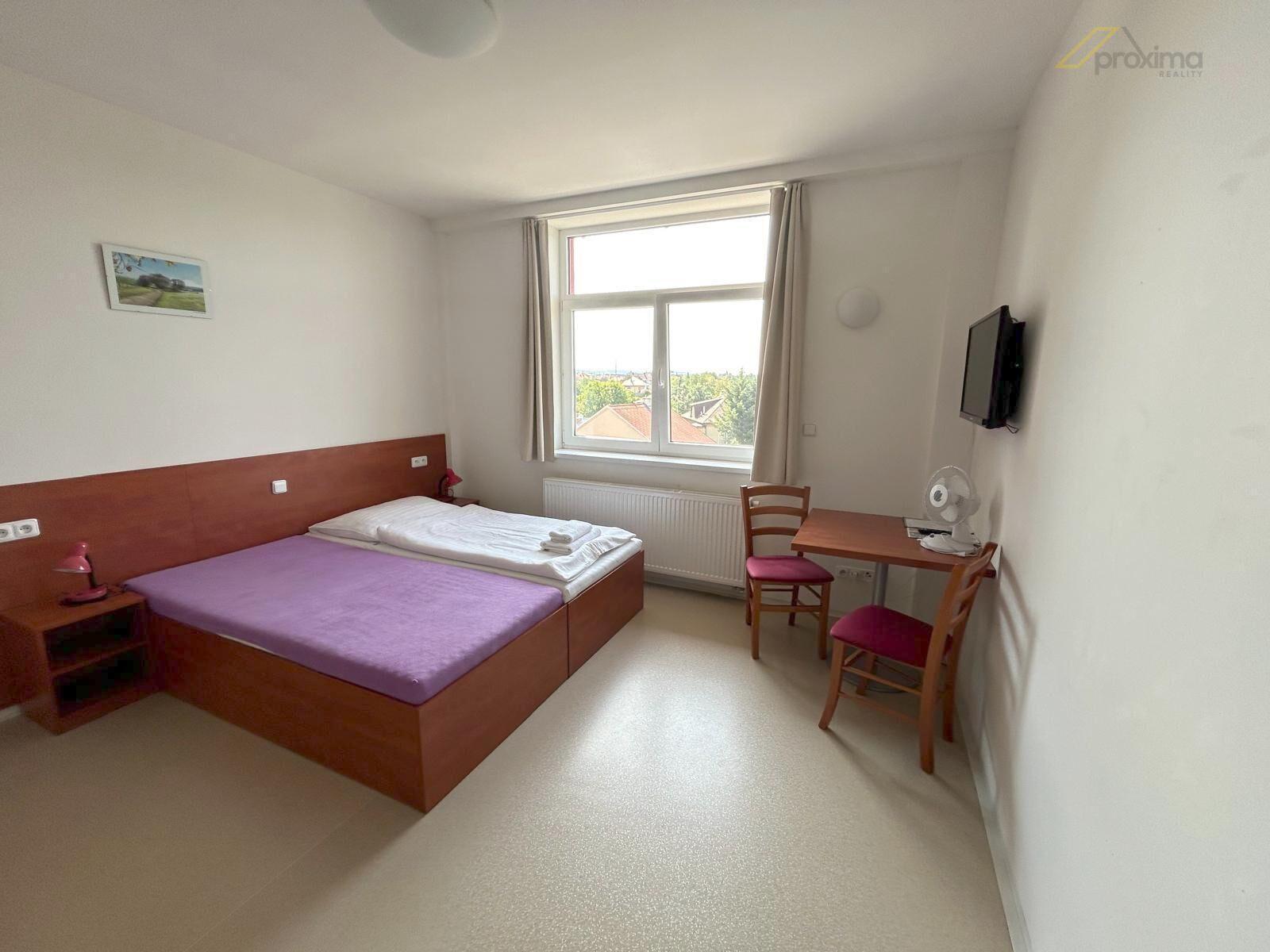 Proxima Reality nabízí ubytovací zařízení: garsonku 1+kk s vlastní kuchyňkou a koupelnou v prostorách Sport Hotelu v Českých Budějovicích, Jiráskovo nábřezí.