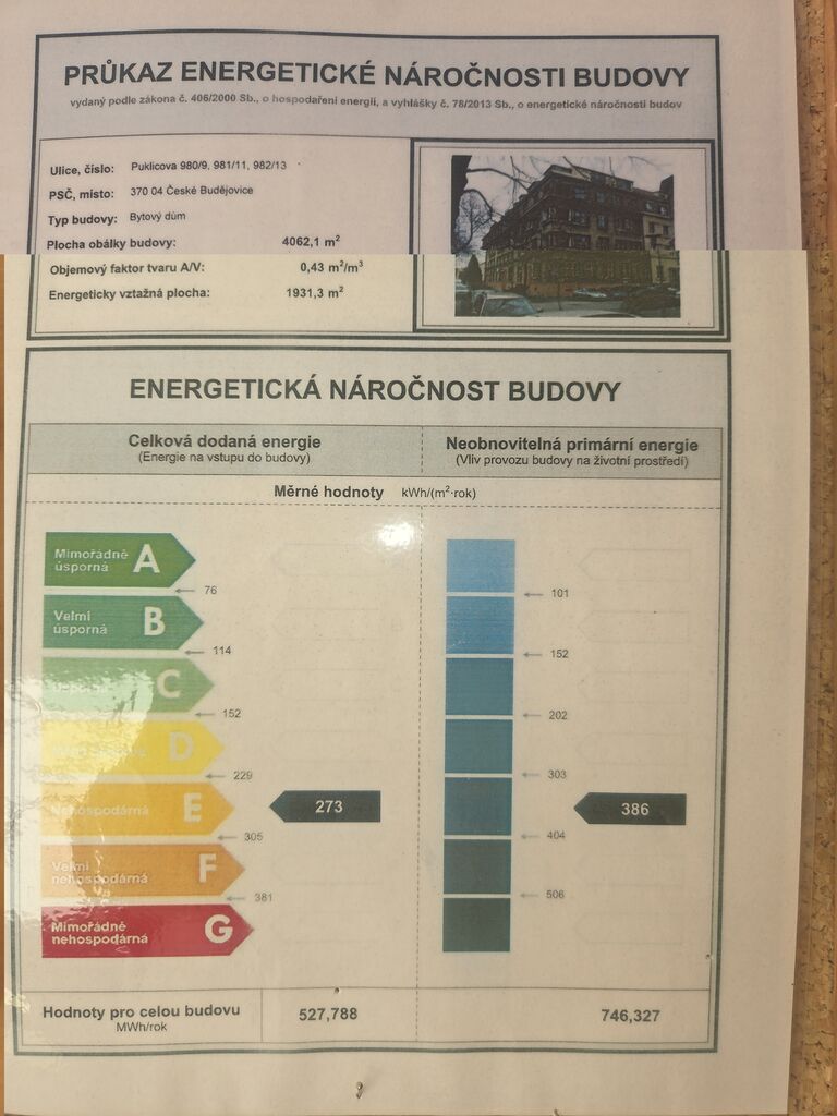 - Ukazatel energetické náročnosti budovy: 273 kWh/m²