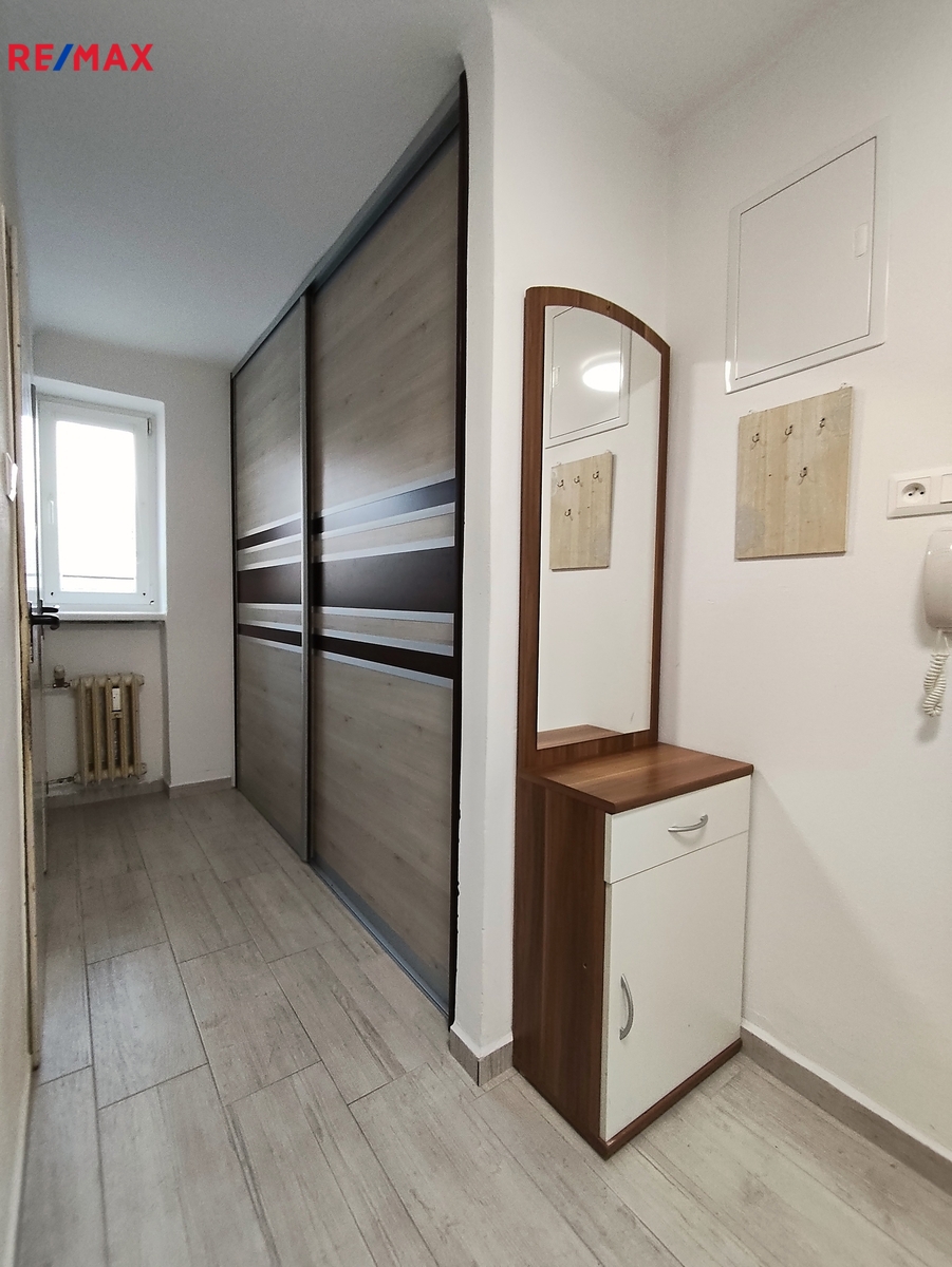 • Chodba s vestavěnými skříněmi, botníkem, skříňkou a věšáky