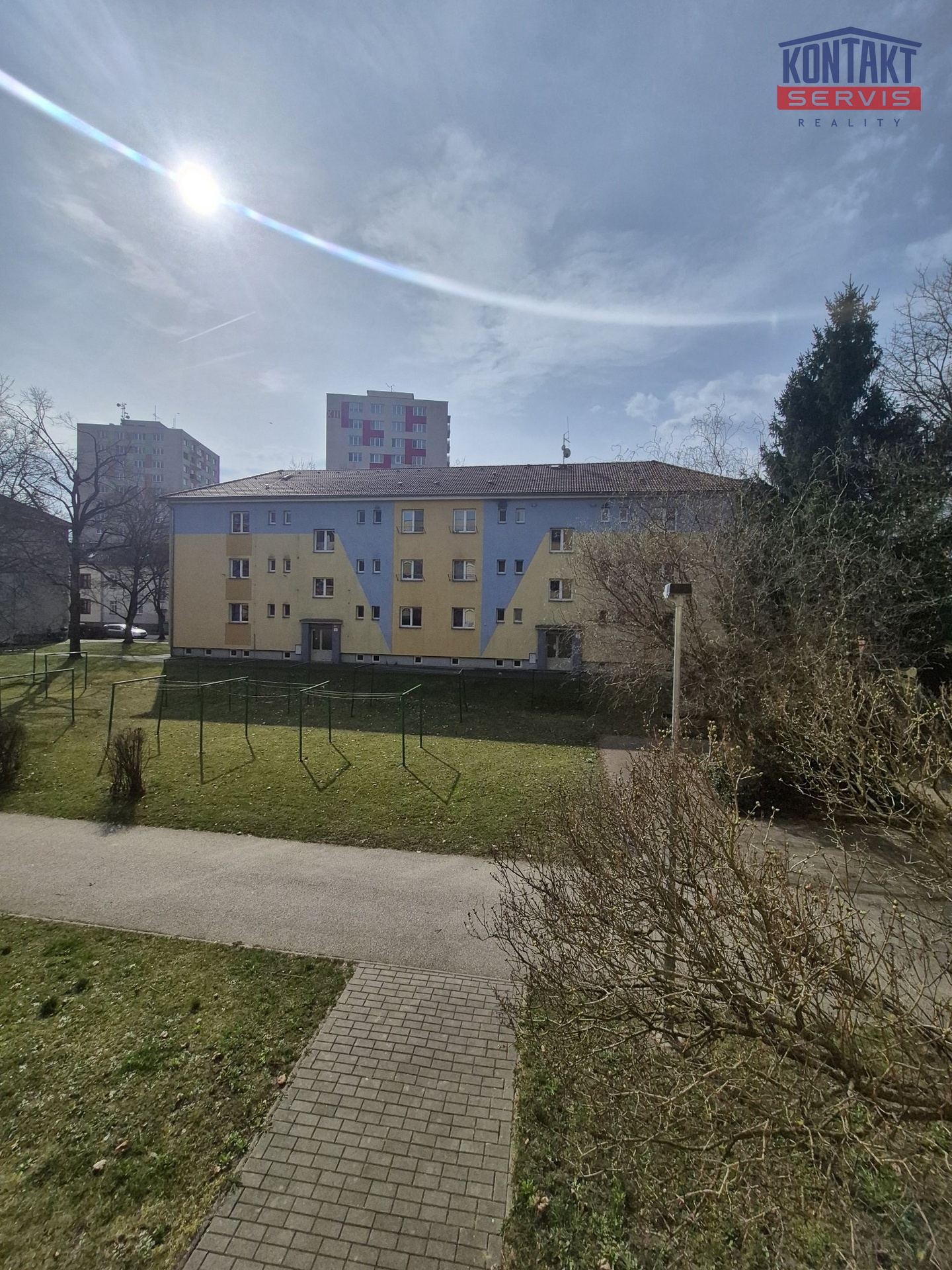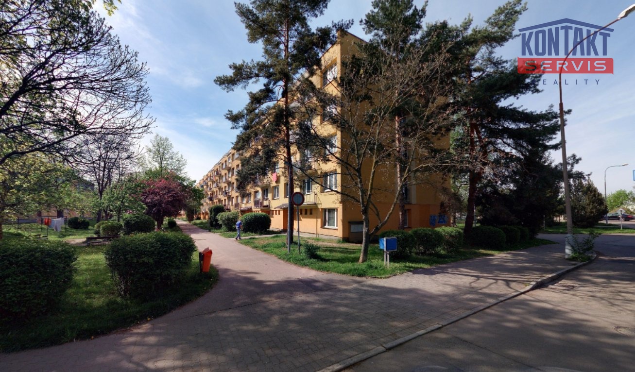 Okno bytu je orientováno směrem na Pekárenskou ulici s výhledem do parkové zeleně, což přispívá k příjemnému a klidnému charakteru bydlení.