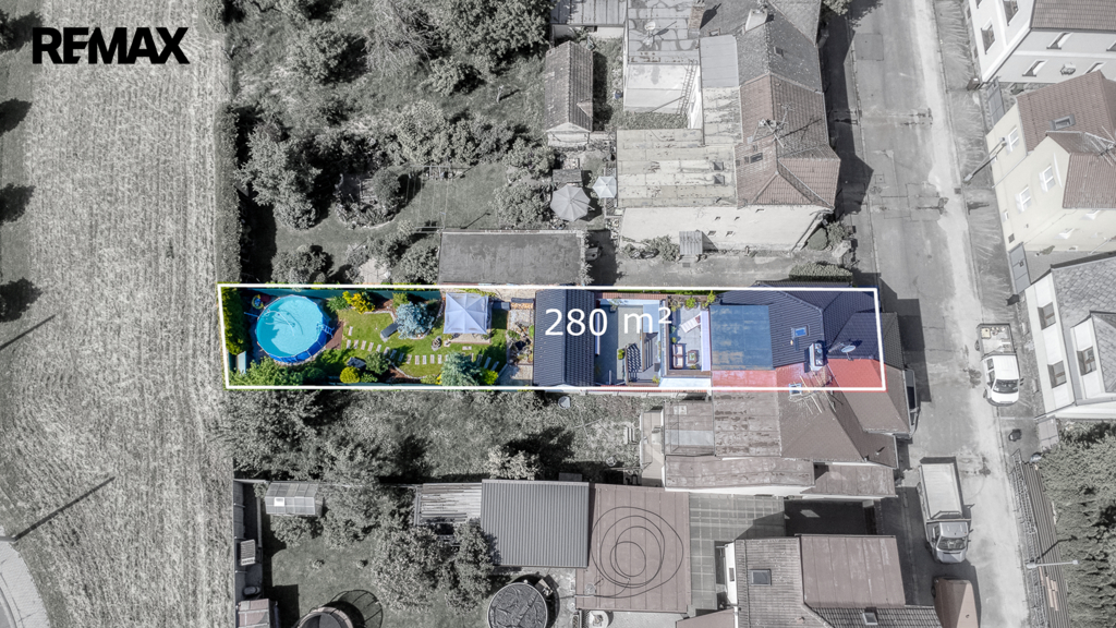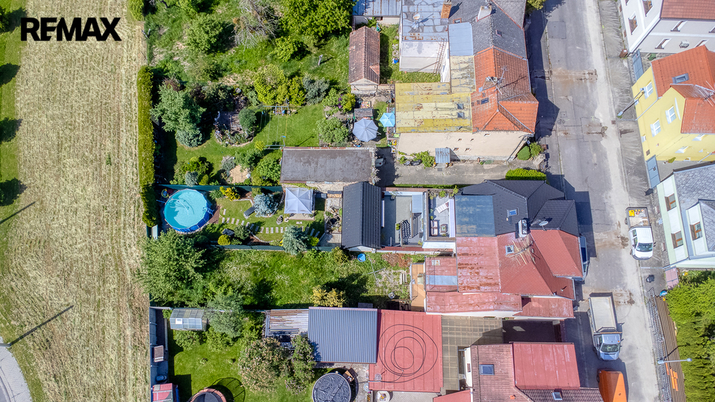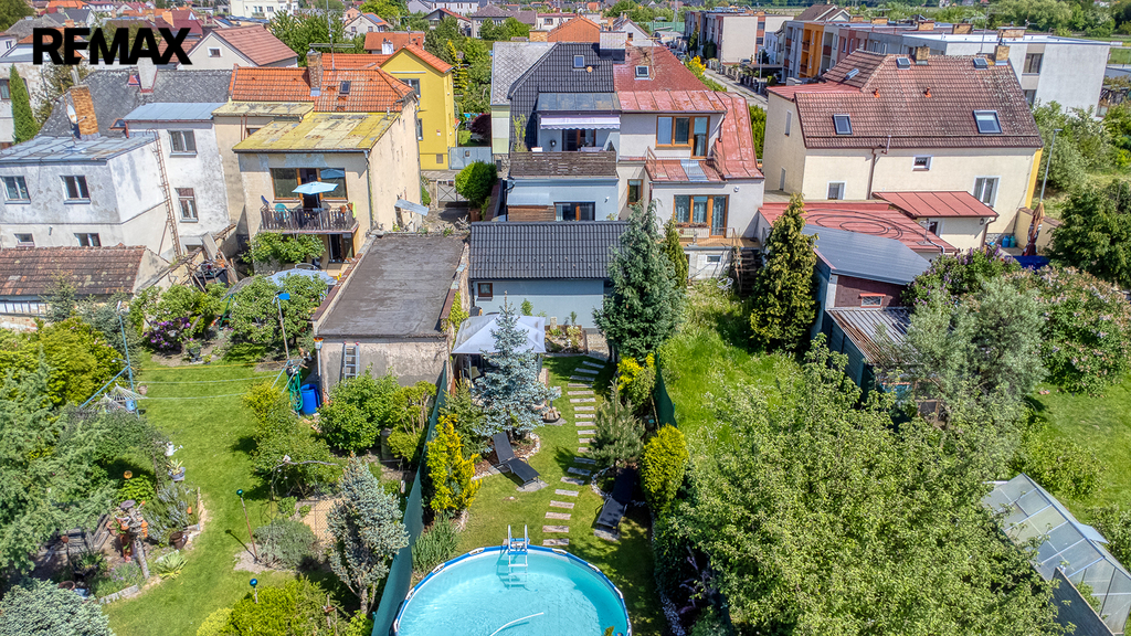 Součástí domu je velmi pěkně udržovaná zahrada s altánkem a nadzemním bazénem, která nabízí dostatek soukromí a prostoru pro rodinnou relaxaci, grilování nebo dětské hry. Zahrada je okrasná, poskytuje příjemné zákoutí i v horkých letních dnech a je ideální pro pěstování květin i drobných plodin.