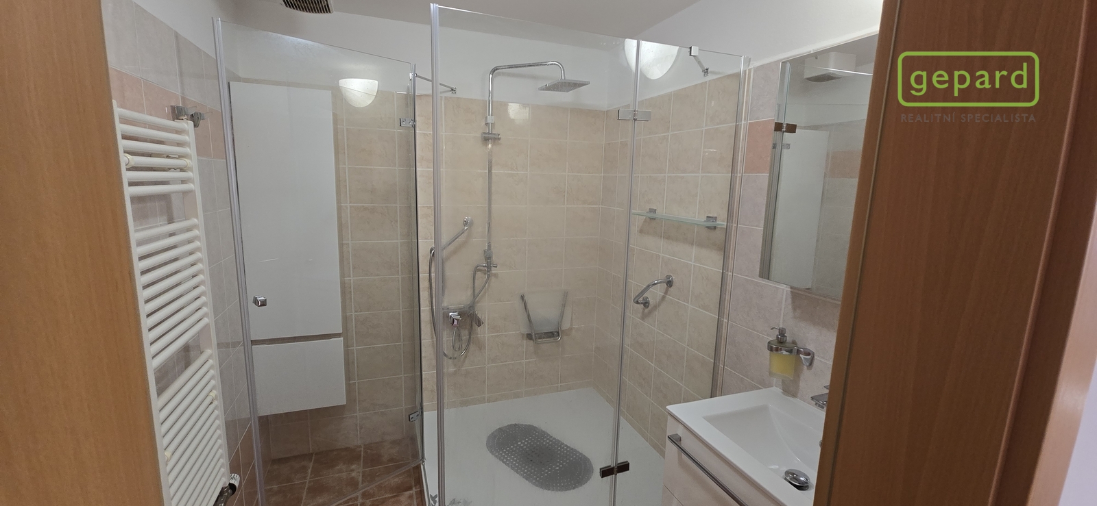 Podlahy dlažby a plovoucí, vytápění centrální ústřední. Byt se nabízí včetně vybavení. Díky svému umístění v domě je byt energeticky méně náročný. K dispozici je dále společná kolárna.