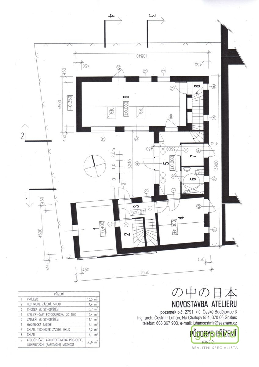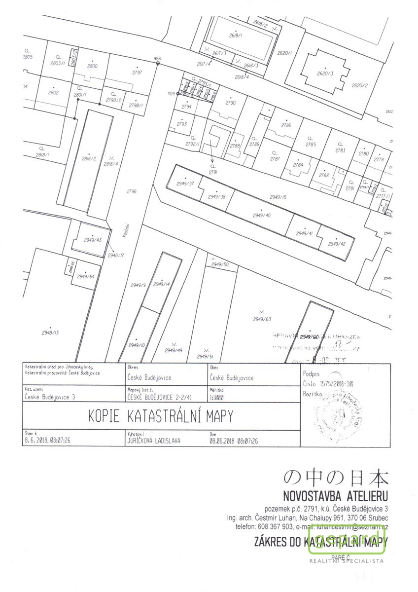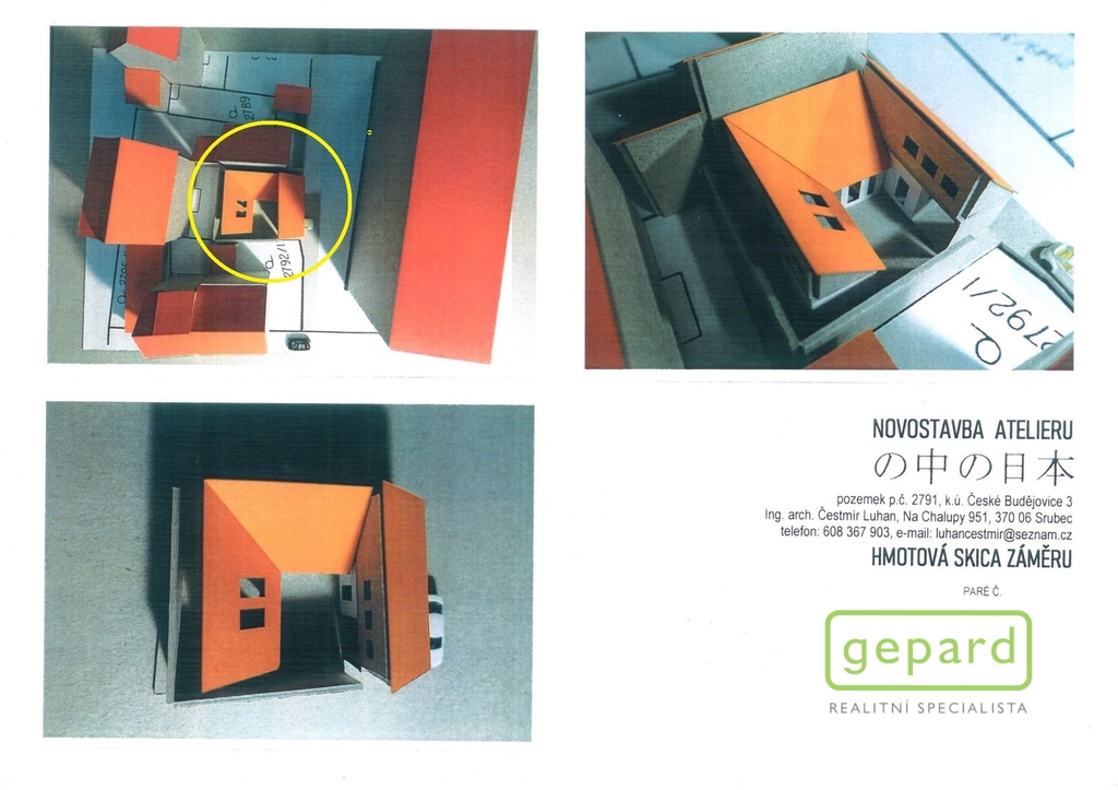 Celková plocha stavebního pozemku je 241 m2 a vlastníkem a zároveň zpracovatelem záměru a projektu byla již zpracována projektová dokumentace k uvedenému, včetně souhlasných stanovisek, přípojek (voda, plyn, elektro, kanalizace), smluv a vyjádření potřebných k následnému vydání stavebního povolení, naposledy - Kladné závazné stanovisko se stavebním záměrem – atelier (víceúčelová stavba) Magistrát města České Budějovice, odbor územního plánování.