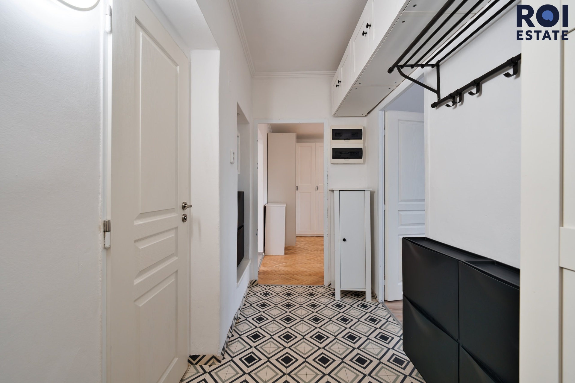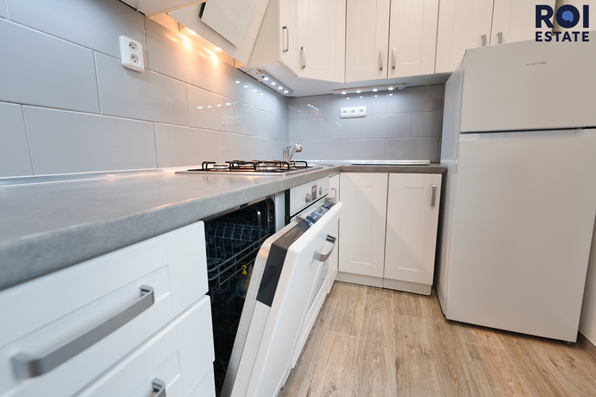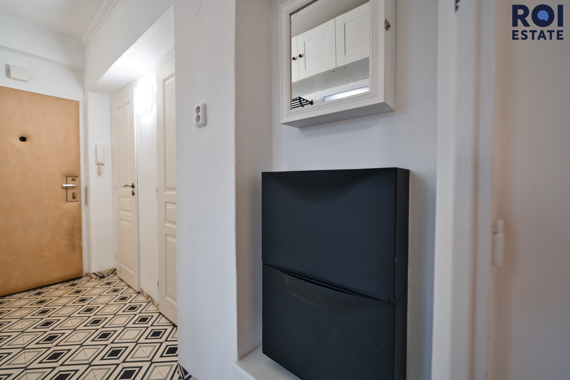 Dispozici tvoří plně vybavená kuchyň (myčka nádobí, trouba, plynová varná deska, lednice a jídelní sezení), obývací pokoj a dvě samostatné ložnice. Koupelna je vybavena sprchovým koutem, toaleta je samostatná. K bytu náleží zasklená lodžie a sklepní kóje. Parkování je možné pohodlně na ulici před domem.