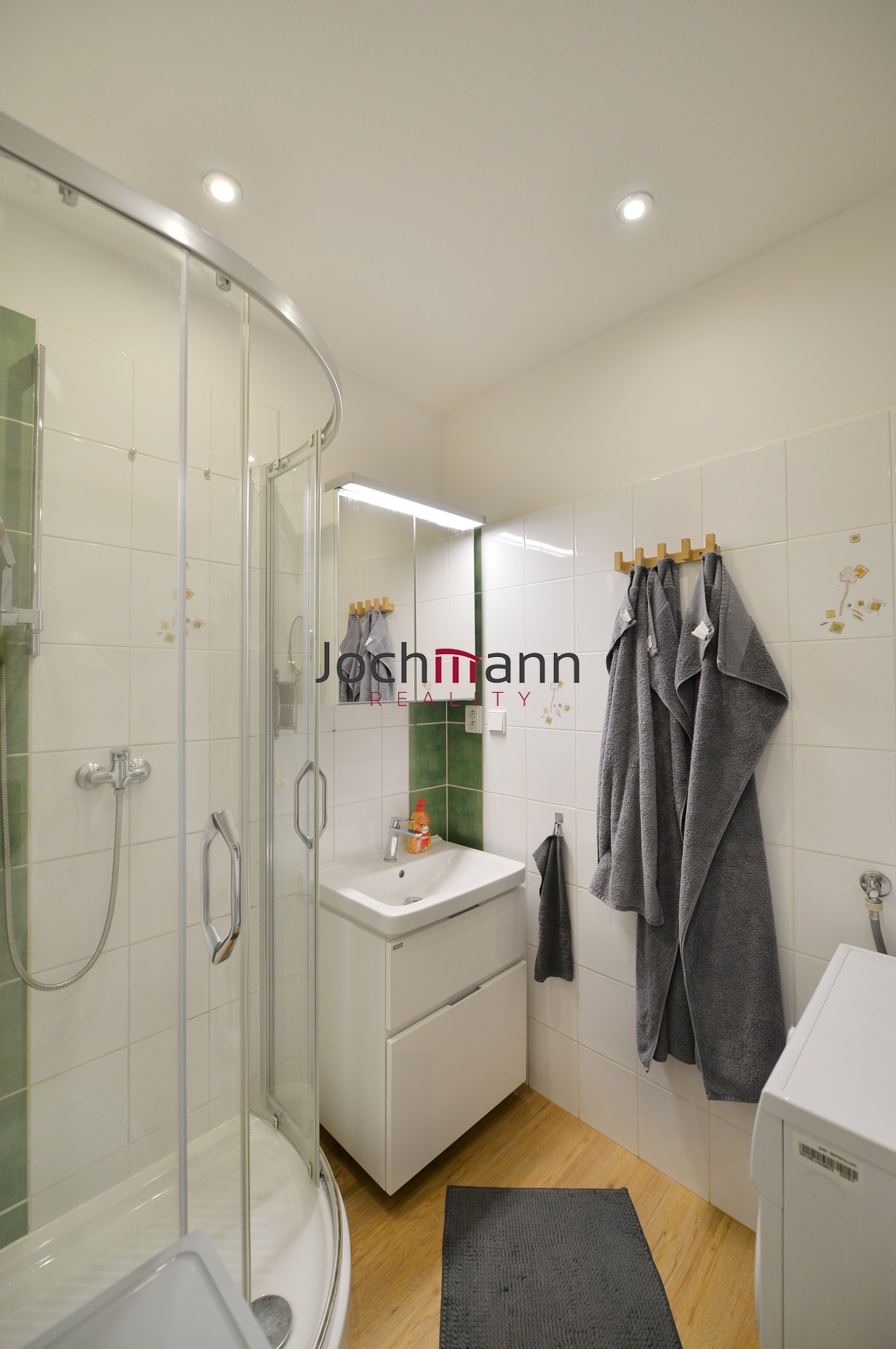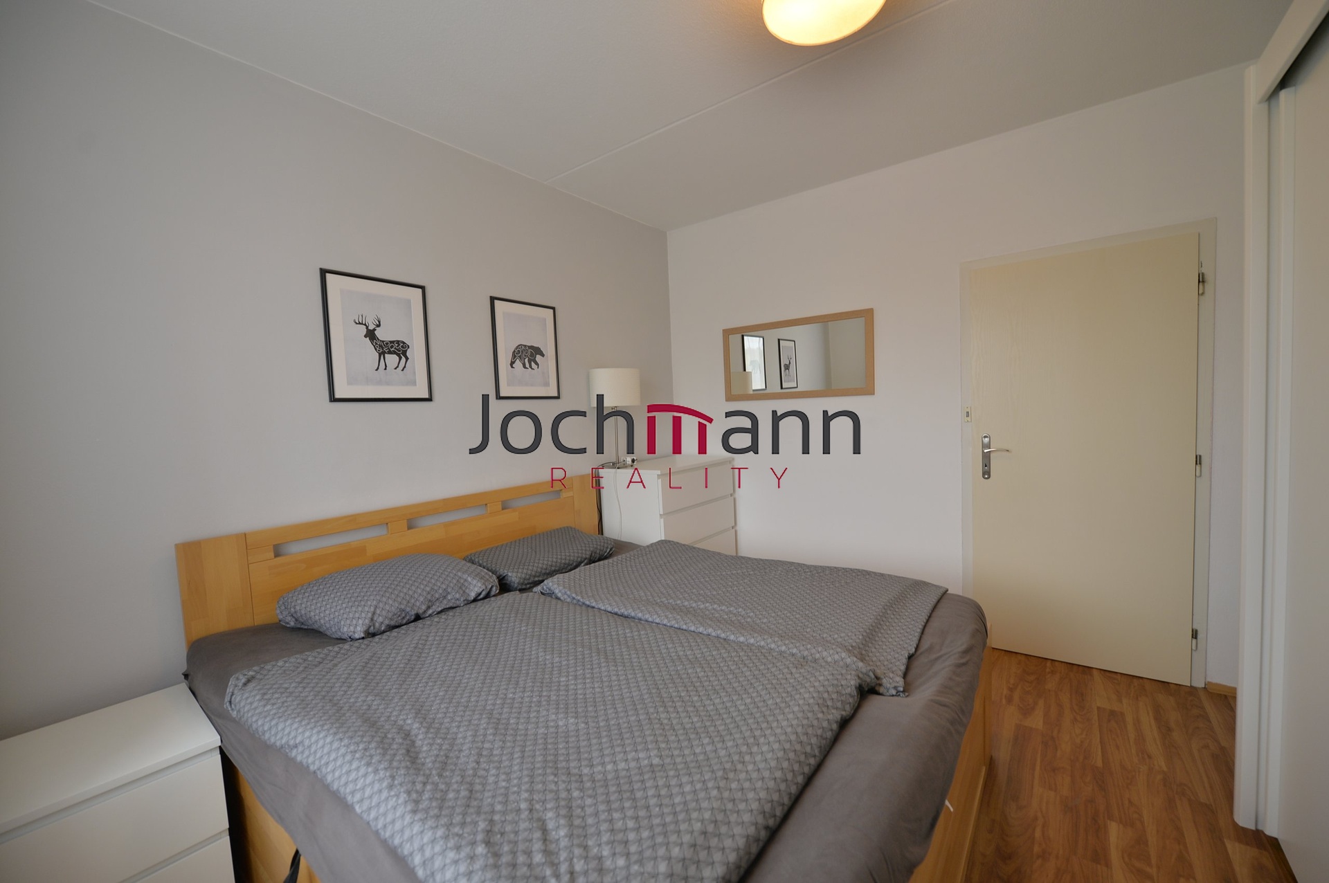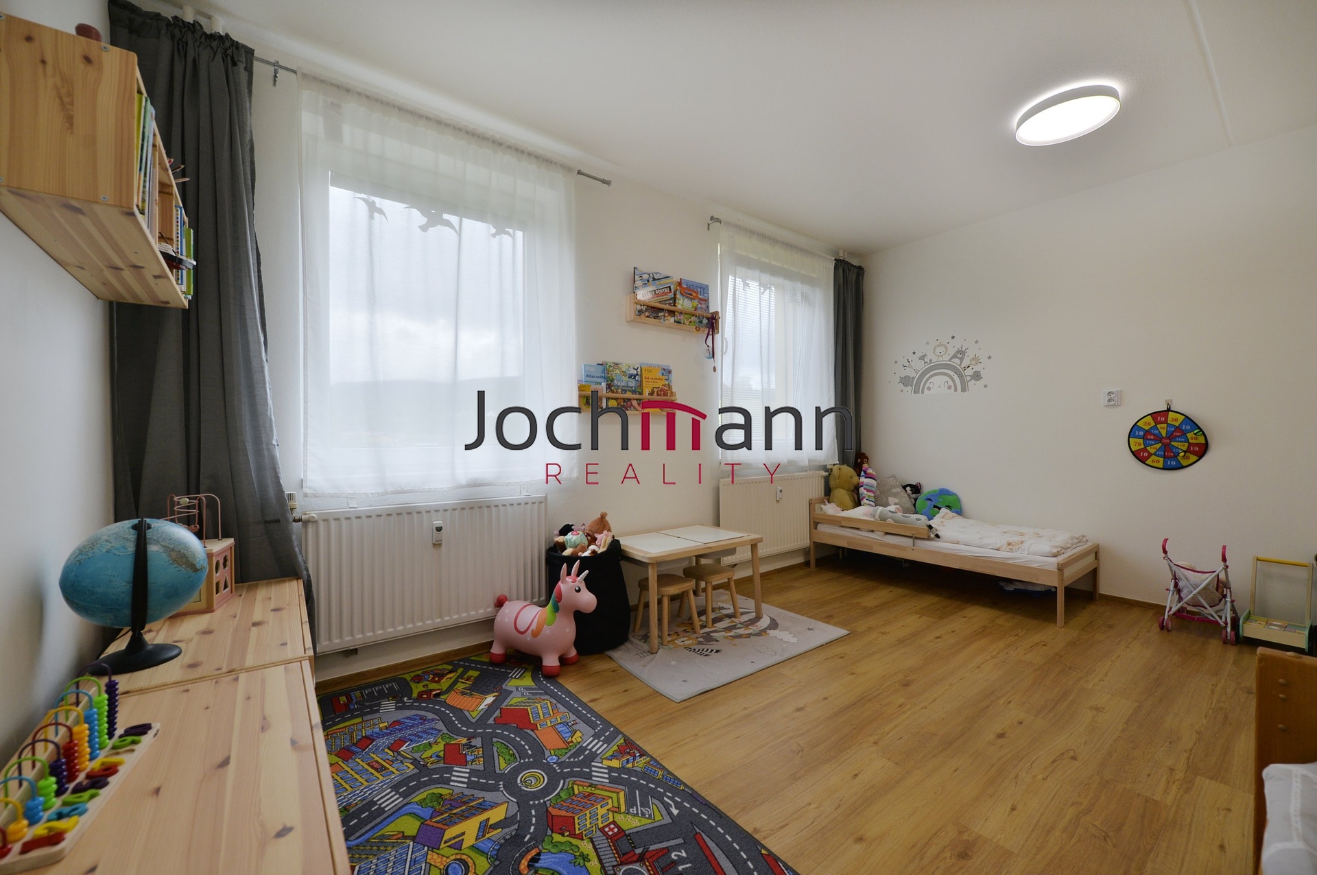 Vnitřní dispozice bytu nabízí prostornou vstupní halu s vestavěnou šatní skříní, na kterou navazuje kuchyně s plně vybavenou kuchyňskou linkou (sklokeramická varná deska, horkovzdušná trouba, digestoř, lednice s mrazákem) a jídelní sestava se dvěma barovými židlemi. Dále pak prostorný obývací pokoj s výstupem do zasklené lodžie, která je díky svému prosklení vhodná k odpočinku nebo relaxaci i za nepříznivého počasí a dva samostatné pokoje s výhledem do klidného okolí. V neposlední řadě se v bytě nachází moderní koupelna se sprchovým koutem, umyvadlem s úložným prostorem a prostorem na pračku a oddělená toaleta. K bytu naleží sklepní kóje a možnost využívat společnou kolárnu a kočárkárnu. Parkování možné před domem. K dispozici po dohodě. Doporučujeme.