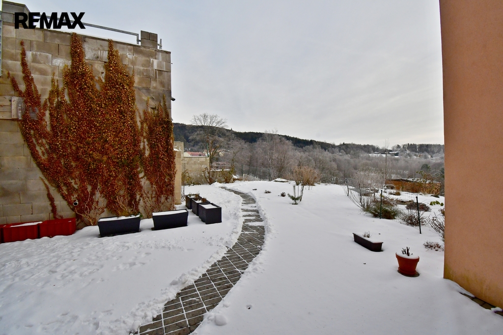 Byt je součástí rodinného domu, má ale vlastní vstup, soukromou zahradu cca 150 m², velkou terasu 26 m² a parkování pro dvě auta. Ideální pro ty, kdo chtějí bydlet komfortně, v soukromí a s přírodou doslova za plotem.