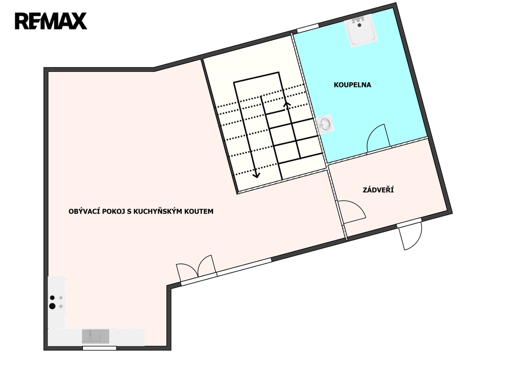 * velkorysý obývací pokoj s kuchyňským koutem (33 m²) a přímým vstupem na terasu
