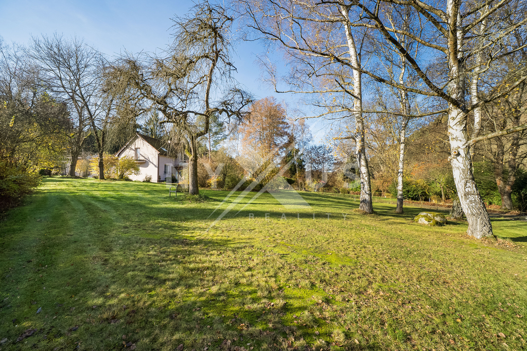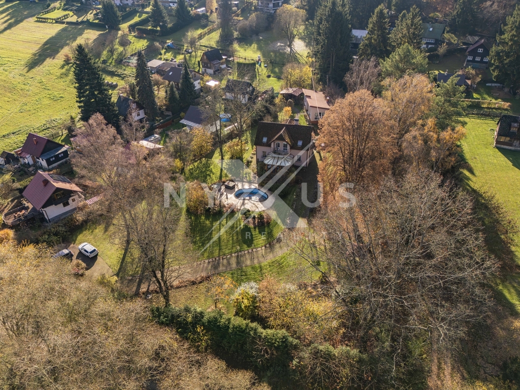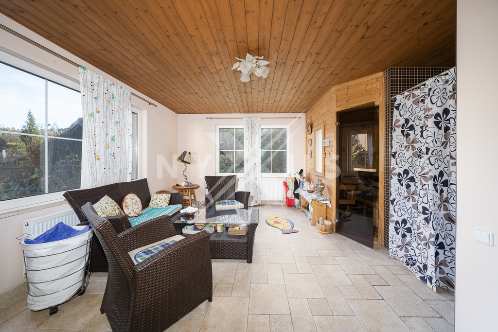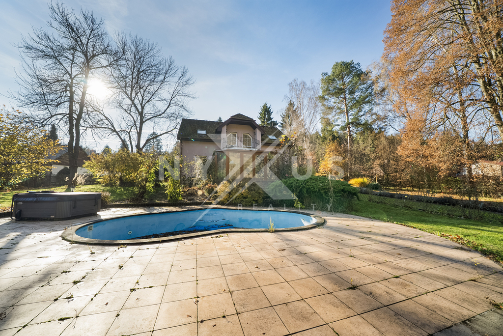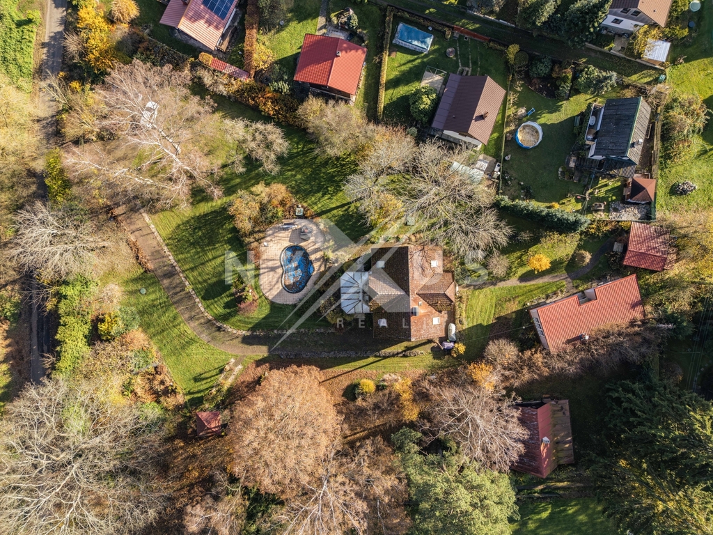 Na pozemku o ploše 3 334 m² se nachází také zateplený dům pro hosty o užitné ploše 56 m², který je vybaven obývacím pokojem, finskou saunou, sprchou, toaletou a samostatným pokojem pro hosty. Od brány vede příjezdová cesta k domu, kde je i možnost pro parkování vozidel. Nechybí ani venkovní posezení určené pro grilování. Součástí pozemku je také bazén a vířivka, které zajišťují komfort a možnosti relaxace. Zeleň v podobě vzrostlých stromů a keřů, které poskytují přirozené zastínění i soukromí.