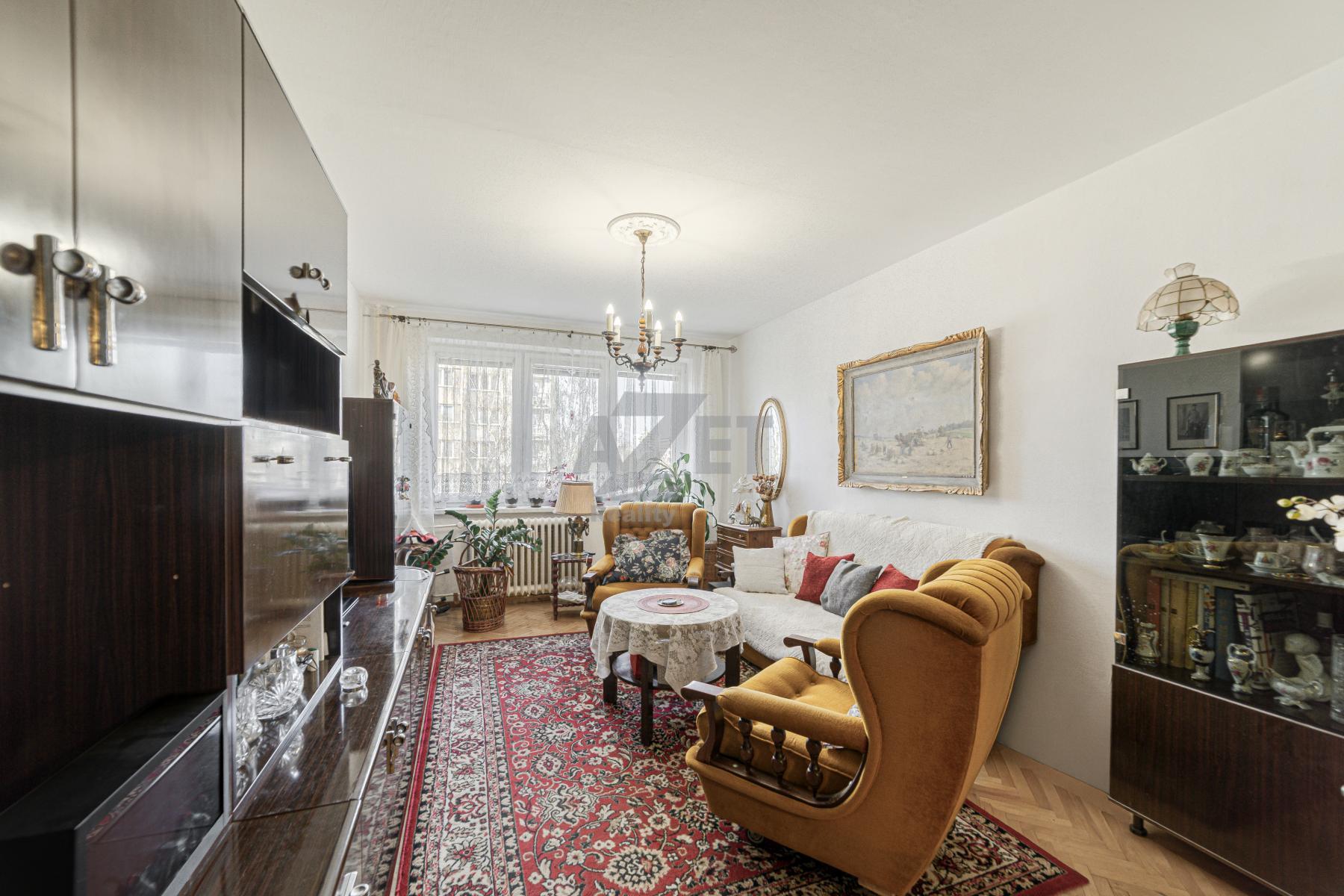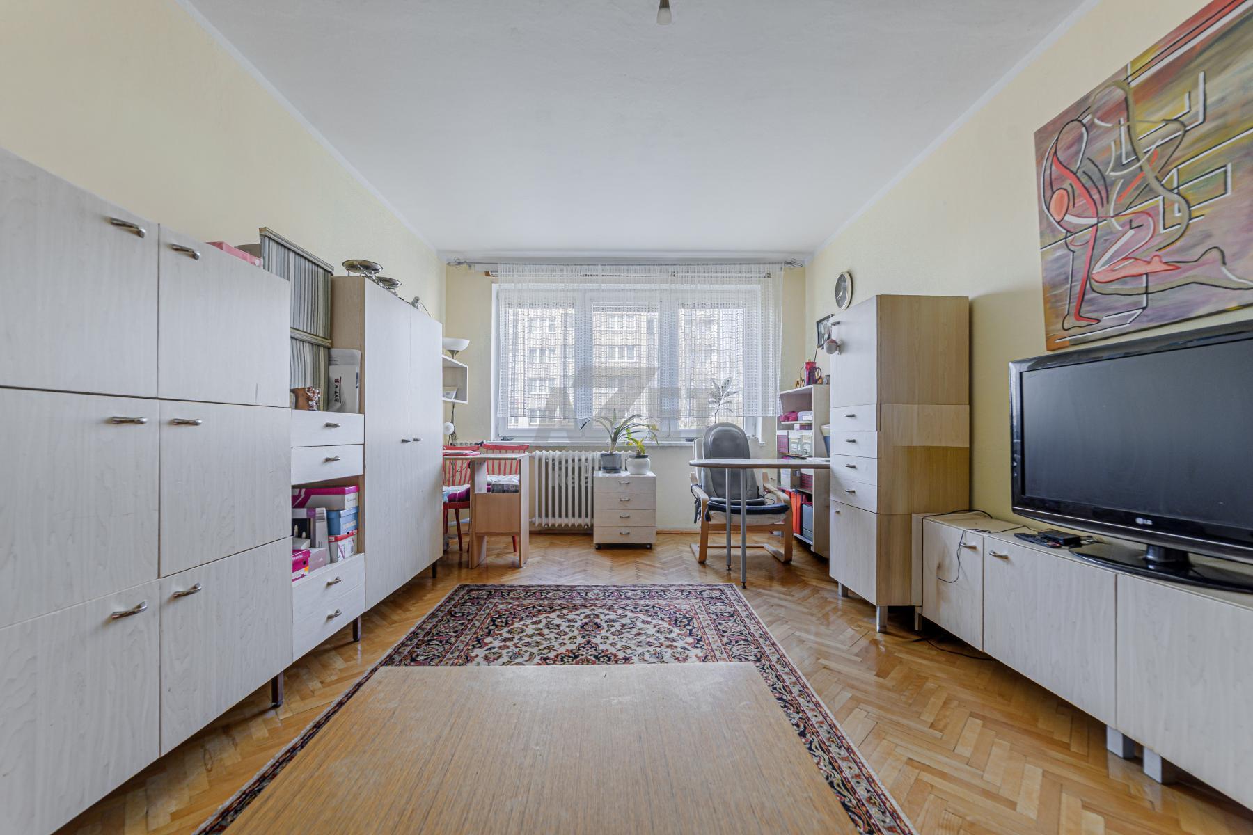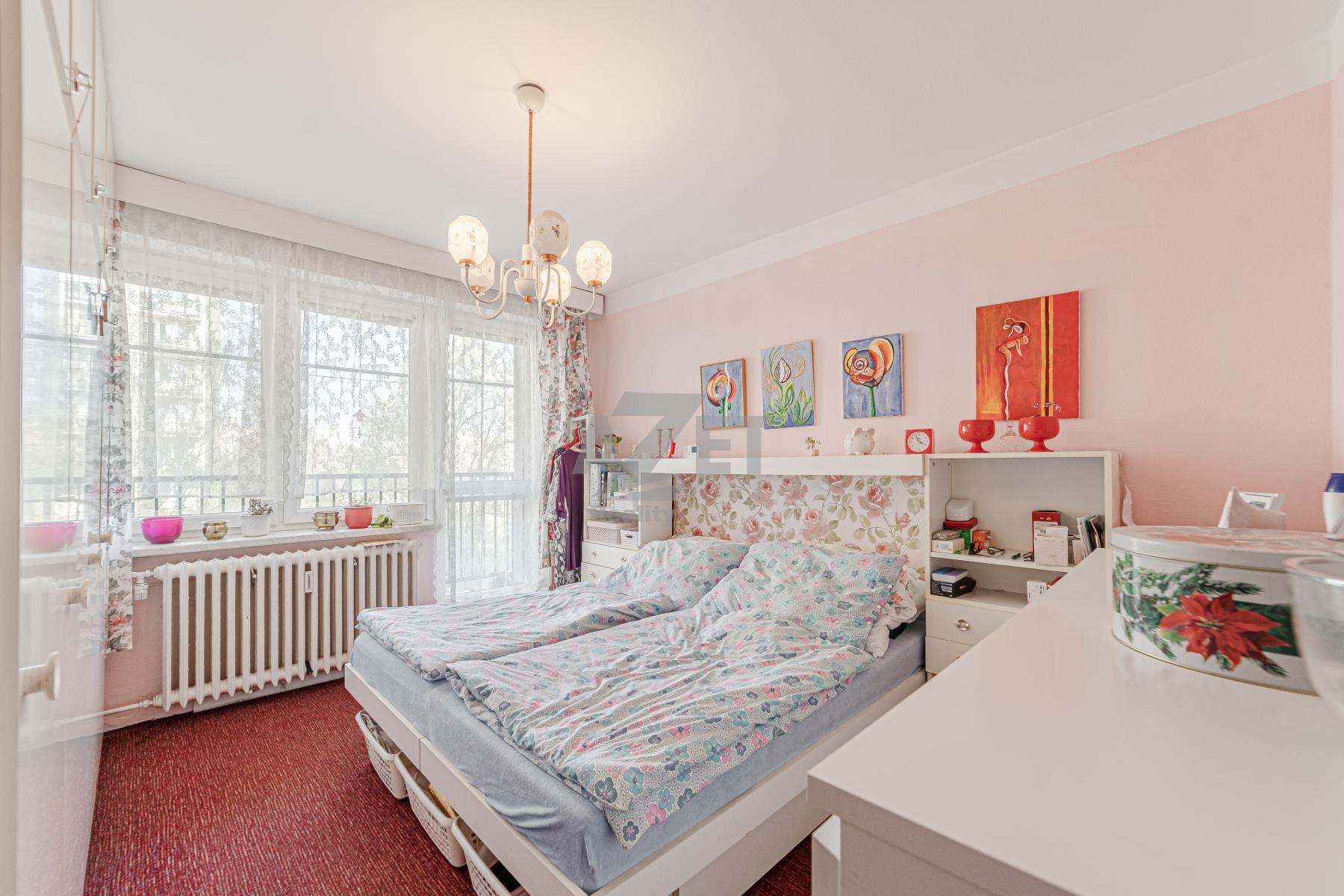 Naše společnost Vám exkluzivně nabízí k prodeji družstevní byt 3+1 po částečné rekonstrukci v 5.NP z třinácti. Převod do OV není aktuálně v plánu BD. Celková výměra prodávané nemovitosti včetně sklepa činí 92 m2. Nespočet úložných prostorů i díky komoře v předsíni. Vyzděné bytové jádro. Ve všech třech obývacích pokojích jsou položené velmi zachovalé parkety V ostatních místnostech keramická dlažba a PVC linoleum. Plastová okna se žaluziemi a parapety. Keramicky obložená koupelna se zapuštěnou vanou a vyhrazeným místem pro pračku. Samostatné WC Kombi. Kuchyňská linka se spotřebiči, barovým stolem a vstupem na první balkón. Na druhý balkón vstupujete z ložnice. Výhled na 2 světové strany (sever vs západ). Nízké měsíční náklady (2 osoby - 6460,- Kč včetně FO). Připojení k internetu a TV. K dispozici sklepní kóje a společná kolárna. Současní majitelé mají výlučně v pronájmu další sklepní prostor (12 m2/300,- Kč/měs.). Část nábytku na fotografiích si budou odvážet majitelé. Velkou výhodou této lokality je dostupnost městské hromadné dopravy (3 min. pěší chůzí) a nespočet parkovacích míst. Nabízená nemovitost je k dispozici od července 2026, popř. po individuální domluvě i o něco dříve.