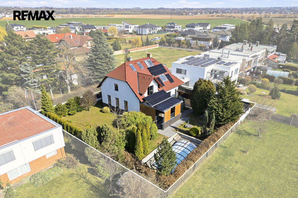 Dispozice domu nabízí dostatek prostoru pro rodinu, práci i odpočinek. Samozřejmostí je hlavní ložnice se šatnou, několik dalších pokojů, pracovna a tři koupelny, které zajišťují maximální komfort a soukromí.