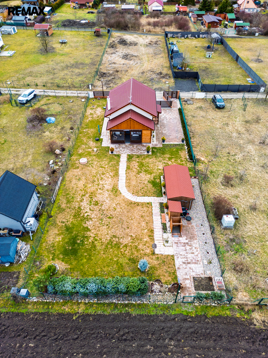 + větší dřevostavbu – zateplená s přívodem elektřiny, ideální nejen pro uložení sezonních věcí, kol nebo vybavení pro vodní sporty či rybaření. Toto místo ocení i domácí kutilové, kteří zde mohou mít svou dílnu. Případně si ji můžete přizpůsobit jako párty místnost.