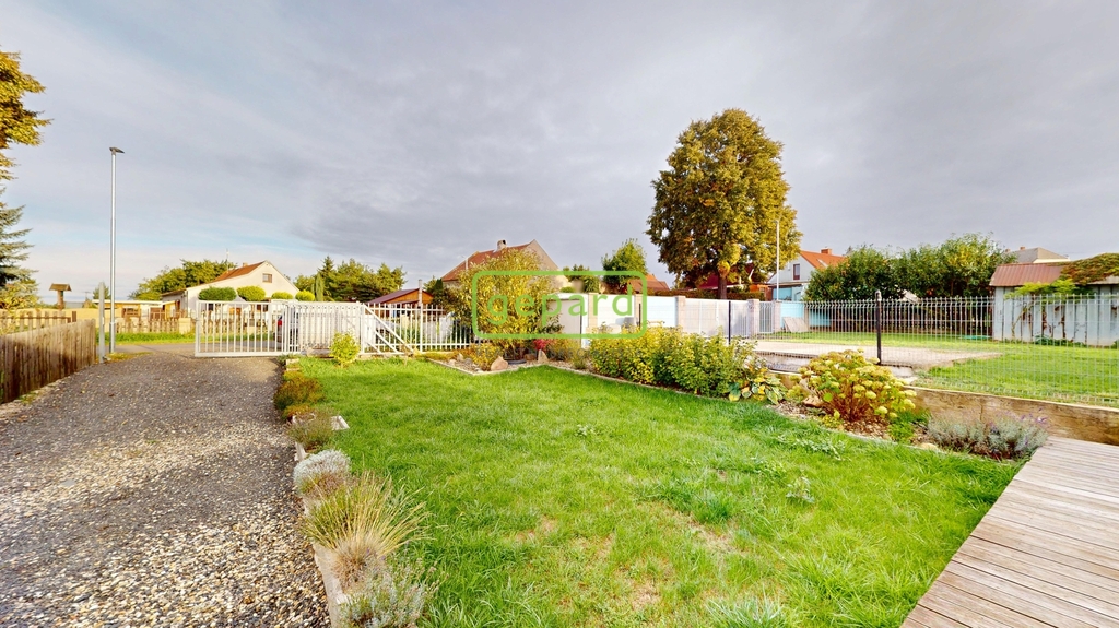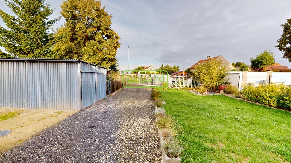 Na zahradě je k dispozici garáž poskytující parkování i úložný prostor, dále suchá toaleta s elektřinou pro pohodlné používání při práci kolem domu a dešťová nádoba o objemu 1,2 m³, zakopaná v zemi, která nezasahuje do terénu ani nenarušuje vzhled pozemku.