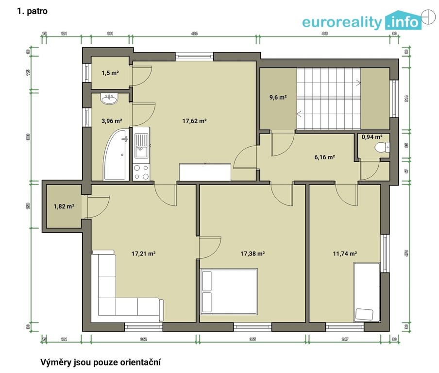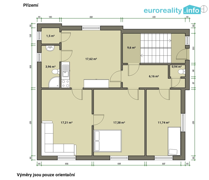 Dům se skládá ze tří samostatných bytových jednotek. V 1. nadzemním podlaží se nachází byt 3+1 o užitné ploše cca 86 m², ve 2. nadzemním podlaží byt 3+1 o užitné ploše cca 88 m² a ve 3. nadzemním podlaží byt 4+1 o užitné ploše cca 58 m². Celková užitná plocha nadzemních podlaží činí přibližně 231,5 m². Součástí domu jsou také prostorné sklepy o výměře cca 97 m², které poskytují dostatek úložného i technického zázemí.