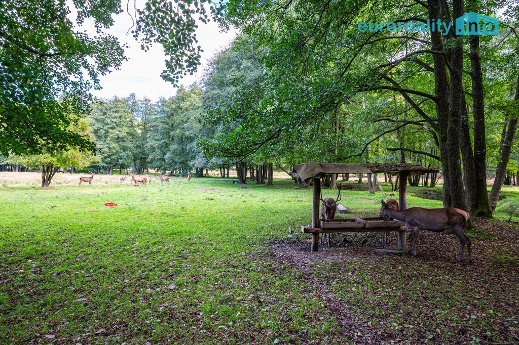 * Zabezpečení: Obora je kompletně oplocena robustním, originálním oborovým pletivem (výška 205 cm) ukotveným na betonových sloupech.