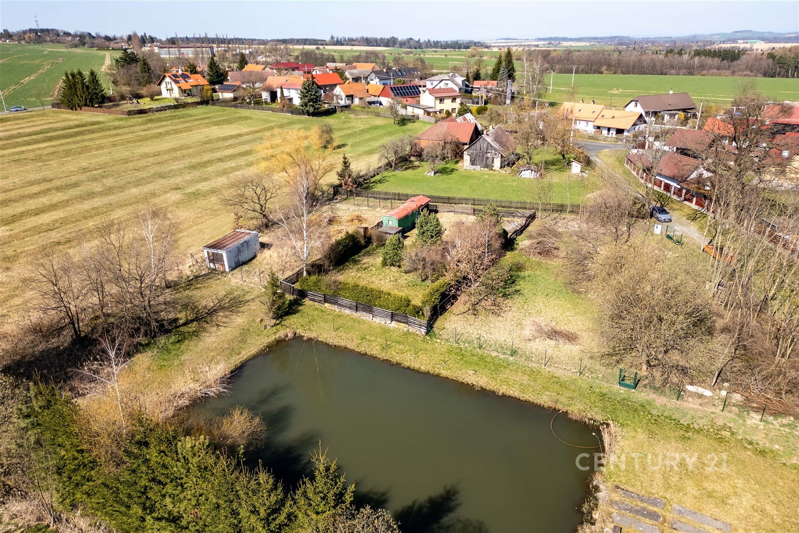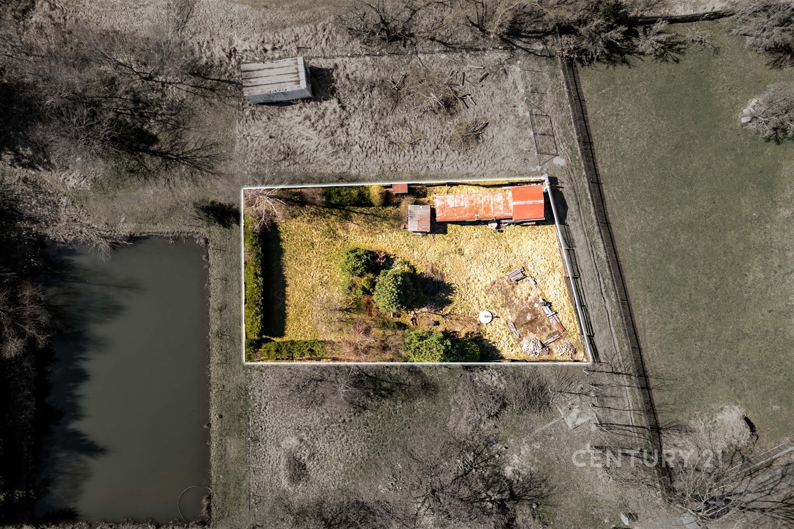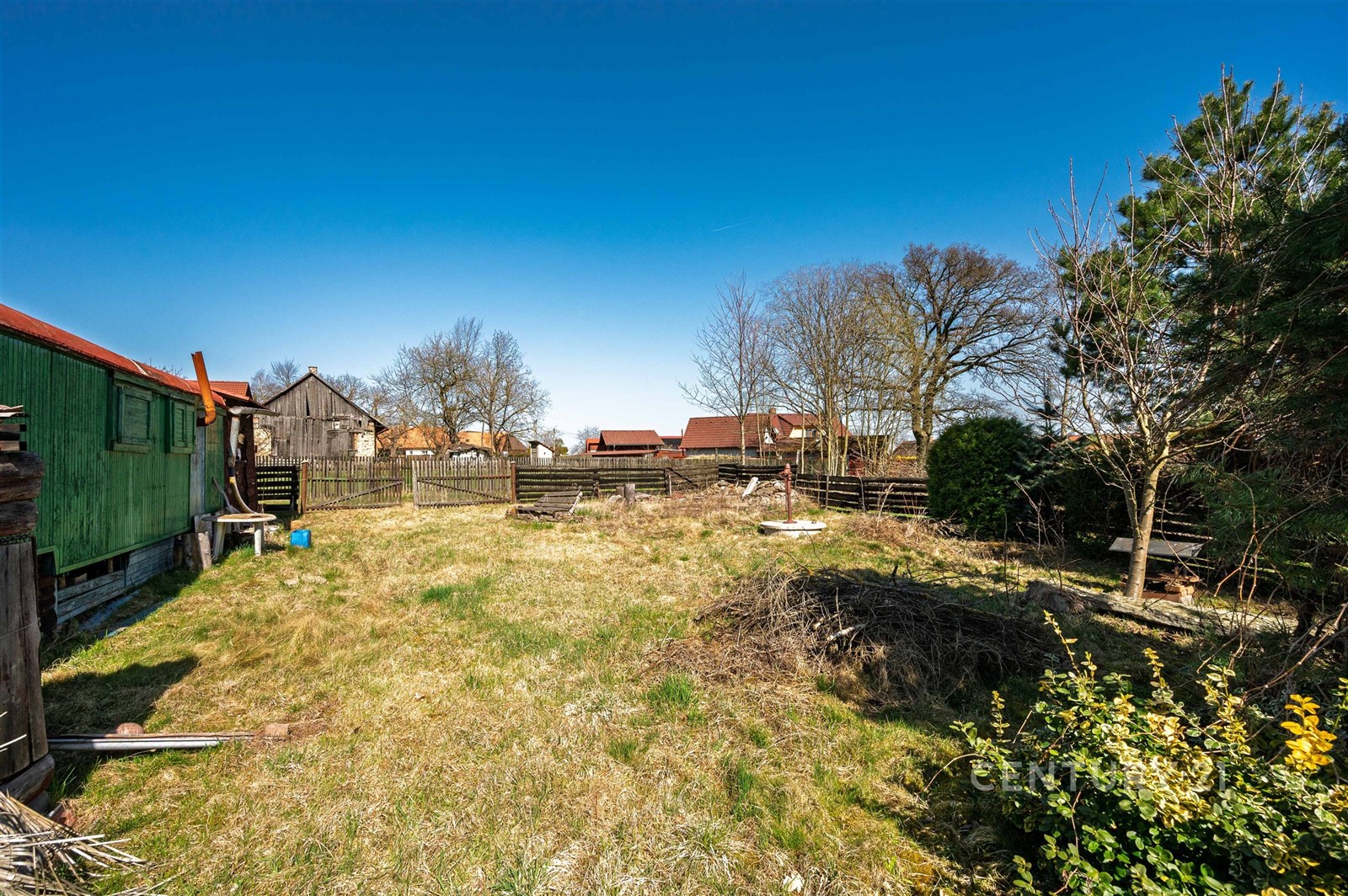Na pozemku se navíc nachází maringotka, kolna a menší kotec, které mohou posloužit jako praktické zázemí během výstavby.