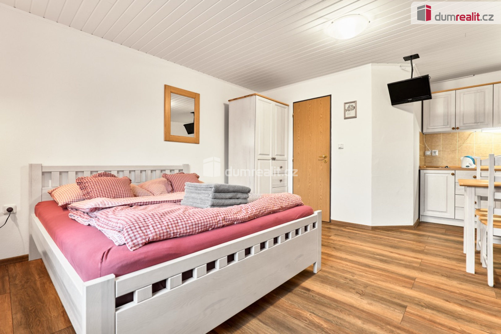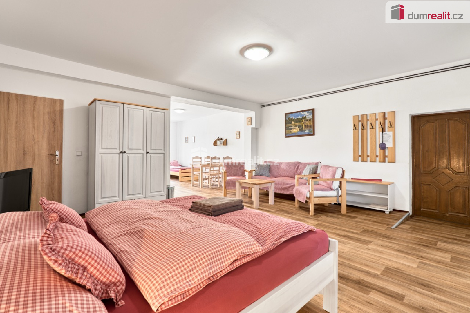 Nabízíme k prodeji kompletně vybavený a zavedený apartmánový dům Mateřídouška, který se nachází v oblíbené rekreační lokalitě Chlum u Třeboně, pouhých 200 metrů od nechovného rybníka Hejtman. Objekt je plně funkční, ve výborném technickém stavu a připravený k okamžitému provozu.