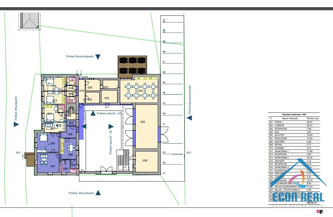 - Plocha parcely: 3848 m²
