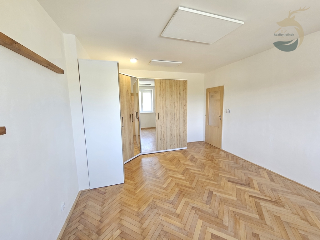 Interiér doplňují parkety, vestavěná šatní skříň, předokenní roleta v ložnici a sítě proti hmyzu.