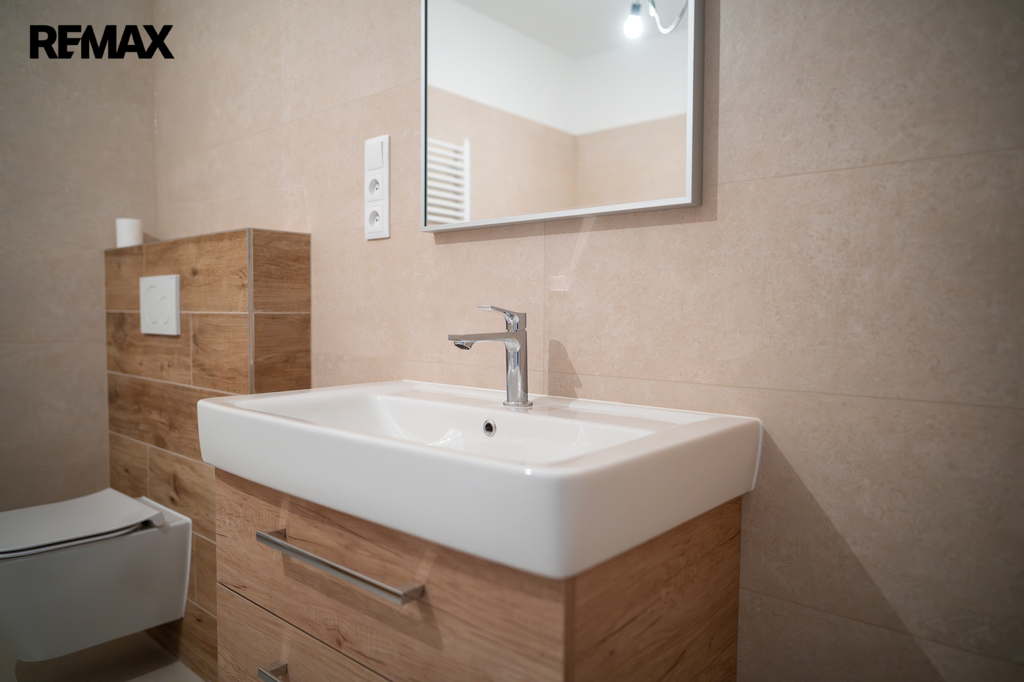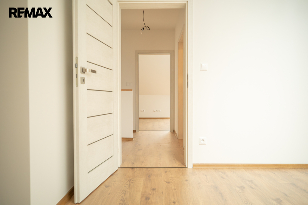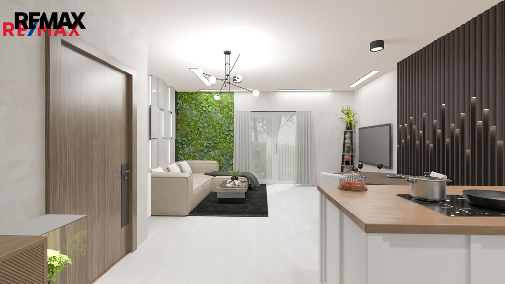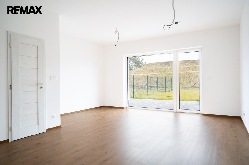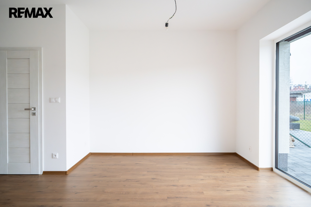 Novostavba o dispozici 3+kk nabízí téměř 100 m² užitné plochy a vlastní pozemek o velikosti přes 100 m². Dům je navržen s důrazem na funkčnost, komfort a současný moderní styl. V přízemí se nachází vstupní chodba s místem pro vestavěné skříně, samostatná toaleta a praktická komora pod schody, kterou lze využít jako spíž či úklidový prostor. Dominantou je světlý obývací pokoj s kuchyňským koutem a velkým francouzským oknem, které plynule propojuje interiér s terasou o velikosti přibližně 12 m² a navazující zahradou – ideálním místem pro letní posezení, grilování i rodinné chvíle.