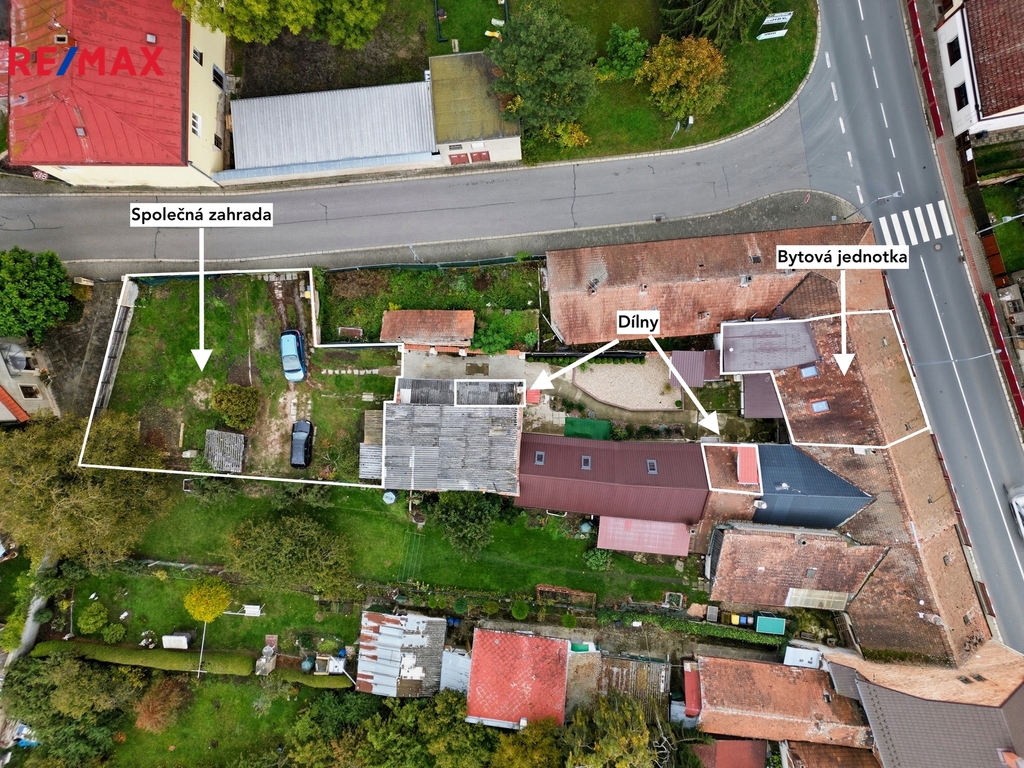 Součástí je také společná zahrada o rozloze 377 m², ideální pro relaxaci, posezení či dětské hry.