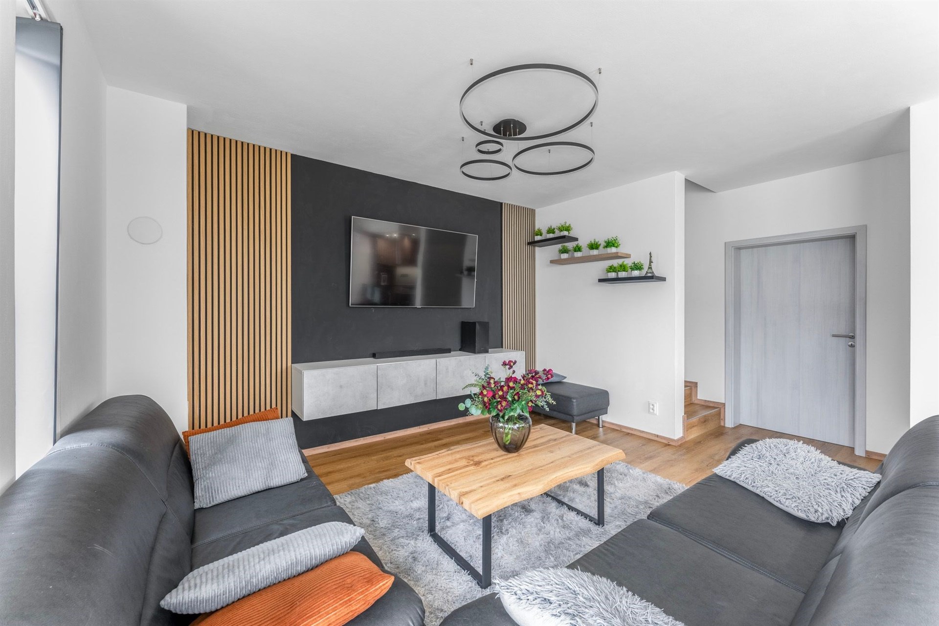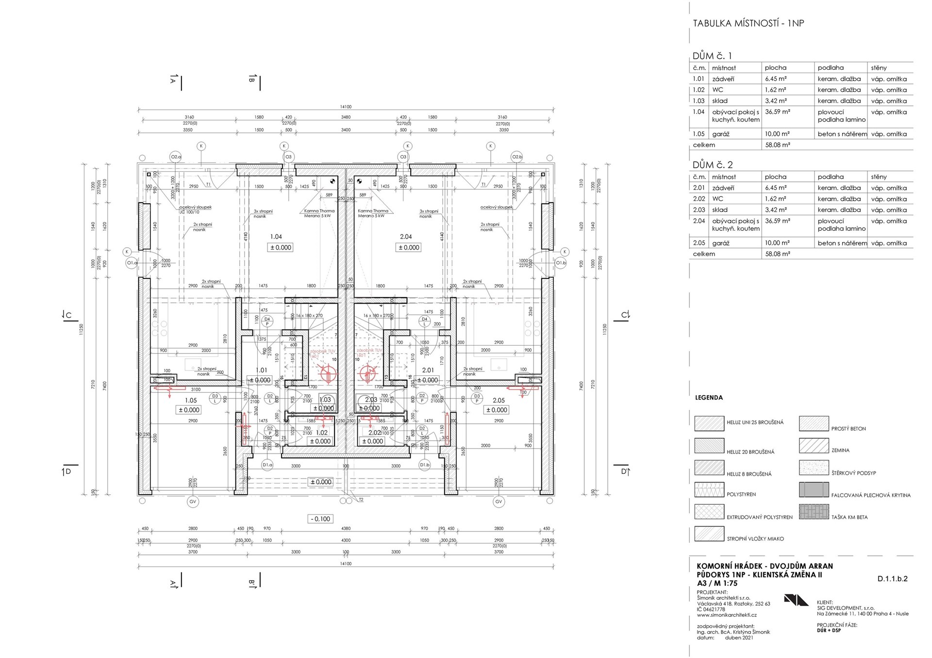 Dispozice 5+kk • Užitná plocha 163 m² • Podlahová plocha 143 m² • Obytná plocha 105 m² • Terasa 20 m² • Pozemek 503 m² • 2 parkovací místa.