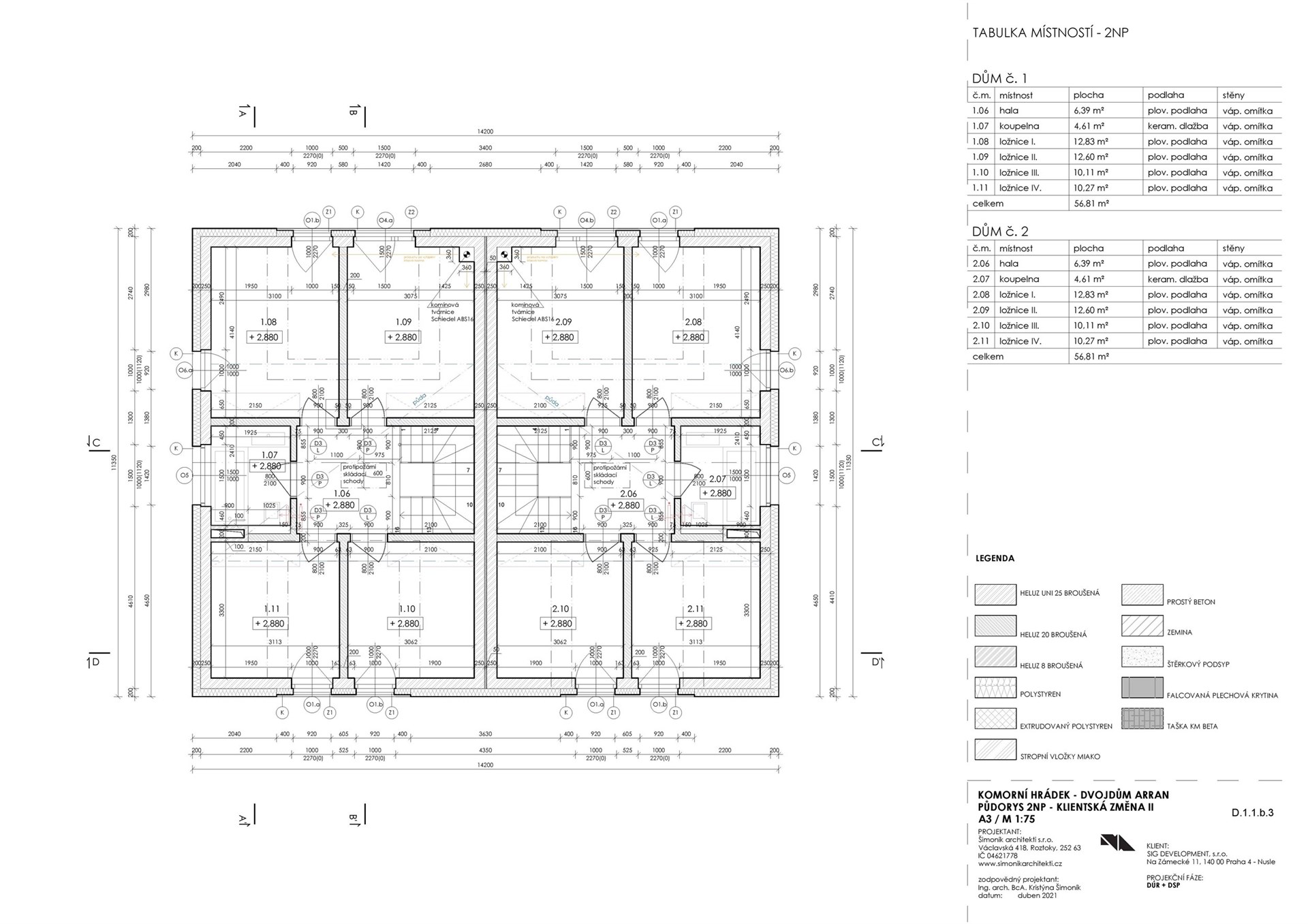 • 4x ložnice: 10,11 m², 10,27 m², 12,60 m², 12,83 m²