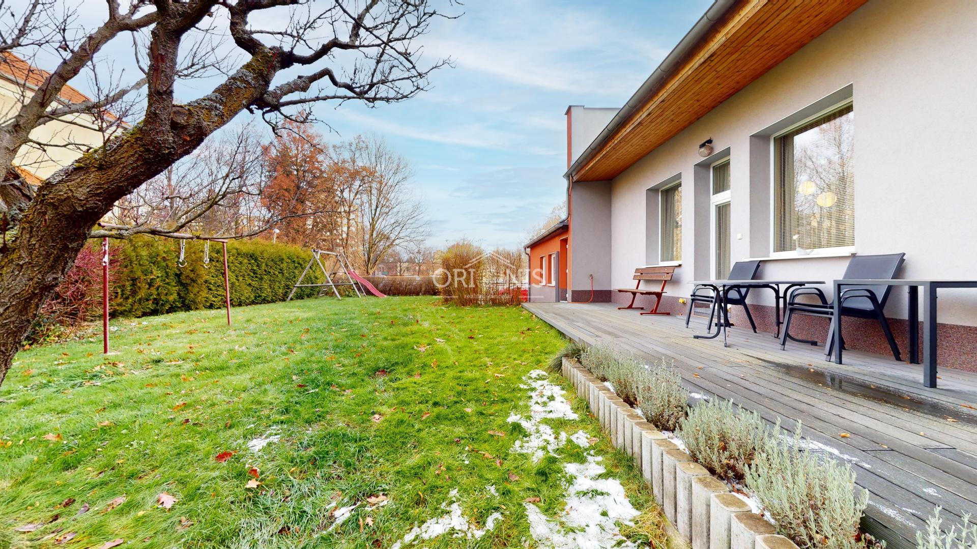 Celková zastavěná plocha činí 236 m, zahrada má 453 m a je přístupná přímo z obývacího pokoje ideální pro rodinné posezení, relax i dětské hry. Pozemek je přitom velmi příjemně oddělený od okolí, takže nabízí soukromí.