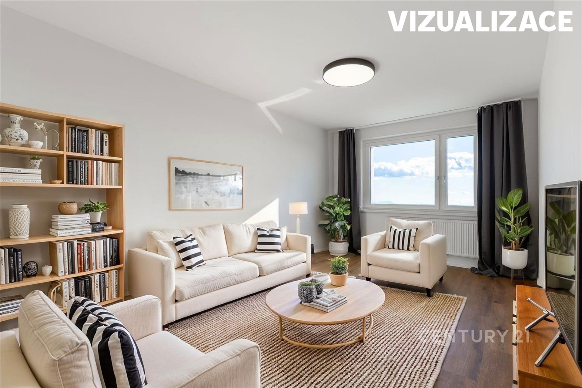 • Obývací pokoj a ložnice jsou i s vizualizacemi jak by mohly zařízené vypadat