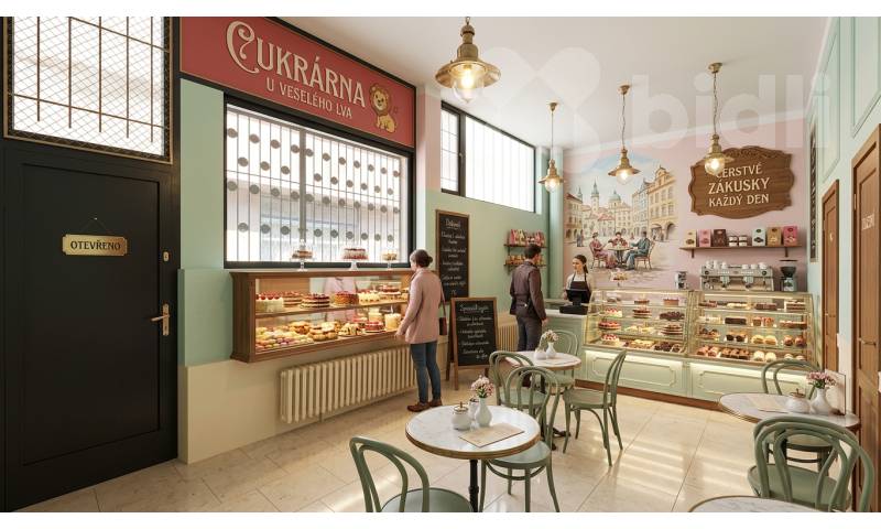 Prostor, který dříve sloužil jako cukrárna, je dispozičně řešen jako čtyři samostatné místnosti, malý sklad a sociální zázemí. Díky své variabilitě je vhodný pro široké spektrum využití - od obchodu, provozovny, dílny až po sklad či kombinaci užívání.