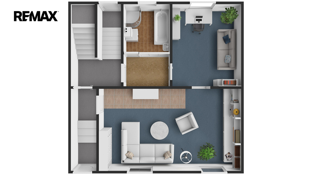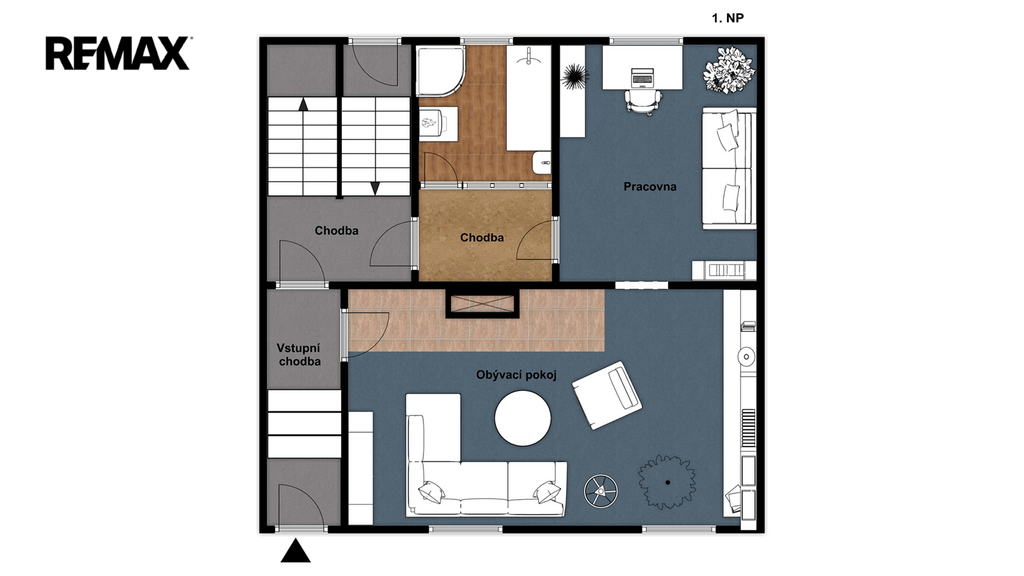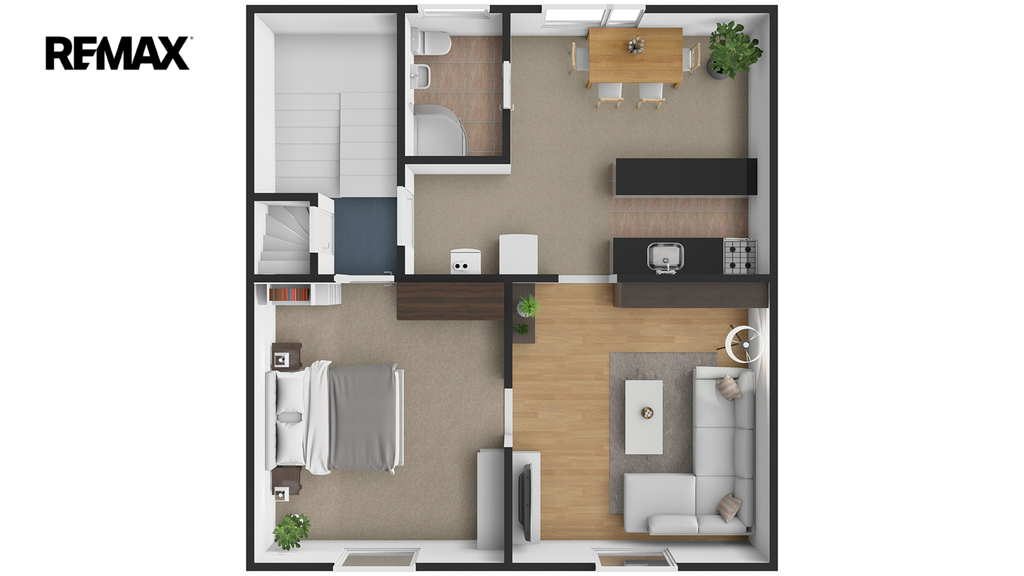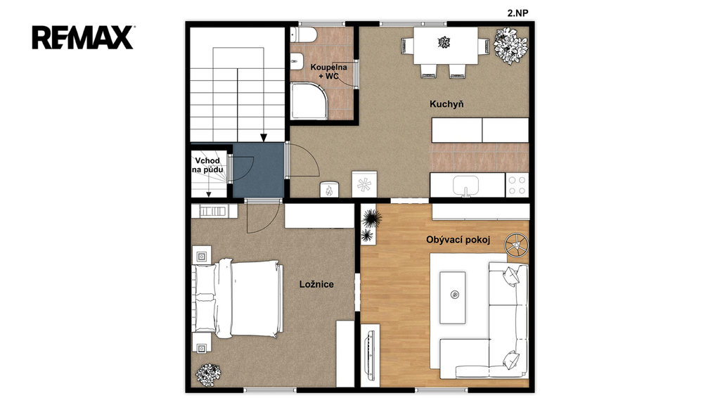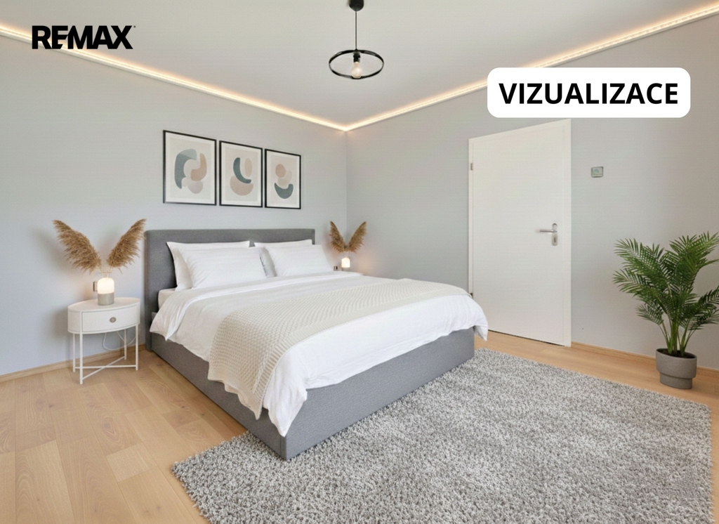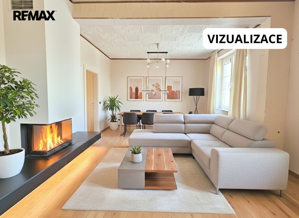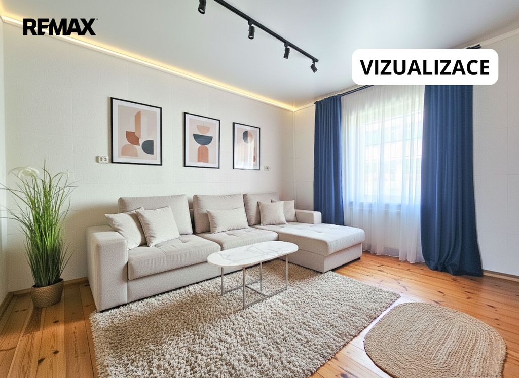 Dům je v původním stavu a proto přikládáme pro inspiraci vizualizaci možného uspořádání vnitřních prostor.
