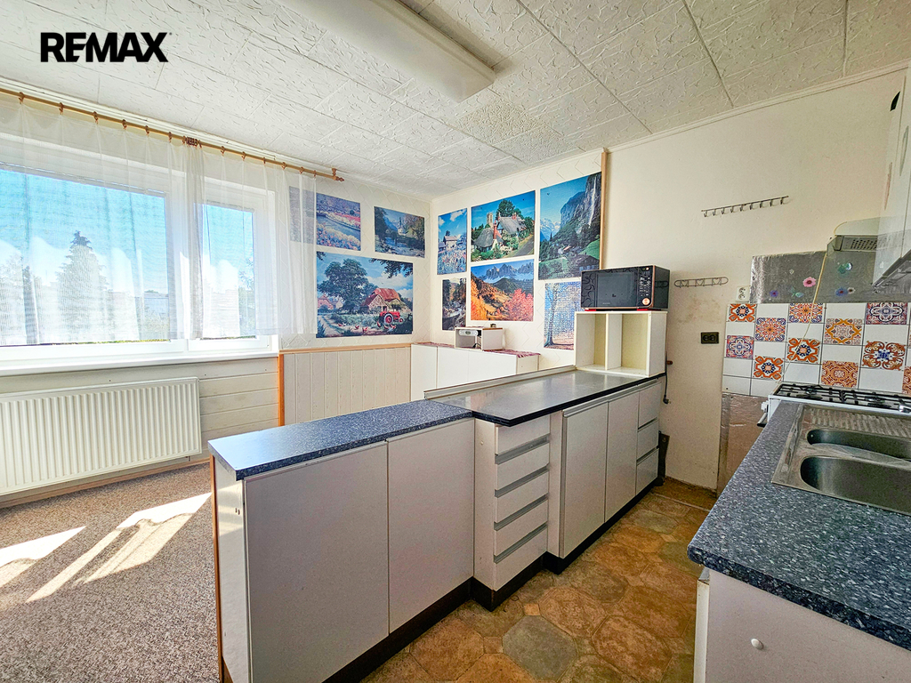 Ve stávajícím uspořádání je obýván byt 2+1 v 1.patře. Prostorná a slunná kuchyně s výhledem do zahrady nabízí dostatek prostoru pro rodinný život. S kuchyní sousedí obývací pokoj, ložnice je přístupná z obývacího pokoje i chodby.
