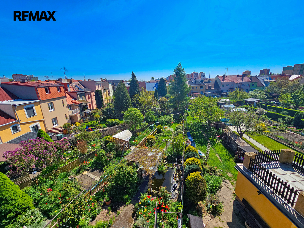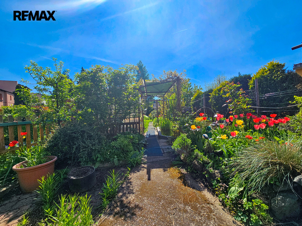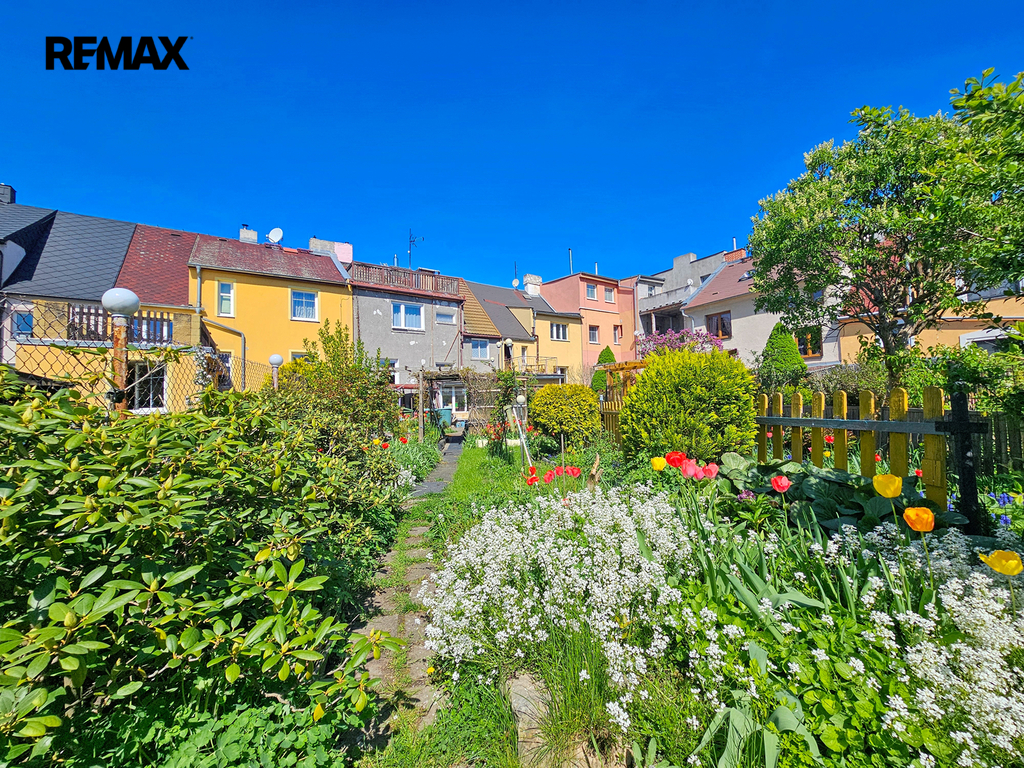 Velkým bonusem tohoto domu je zahrada. Díky orientaci na jihovýchod máte dostatek slunce pro zahradničení, ale zároveň odpolední stín k příjemnému posezení. Domy zde tvoří uzavřený blok se zahradami ve vnitrobloku – takže klid a bezpečí.