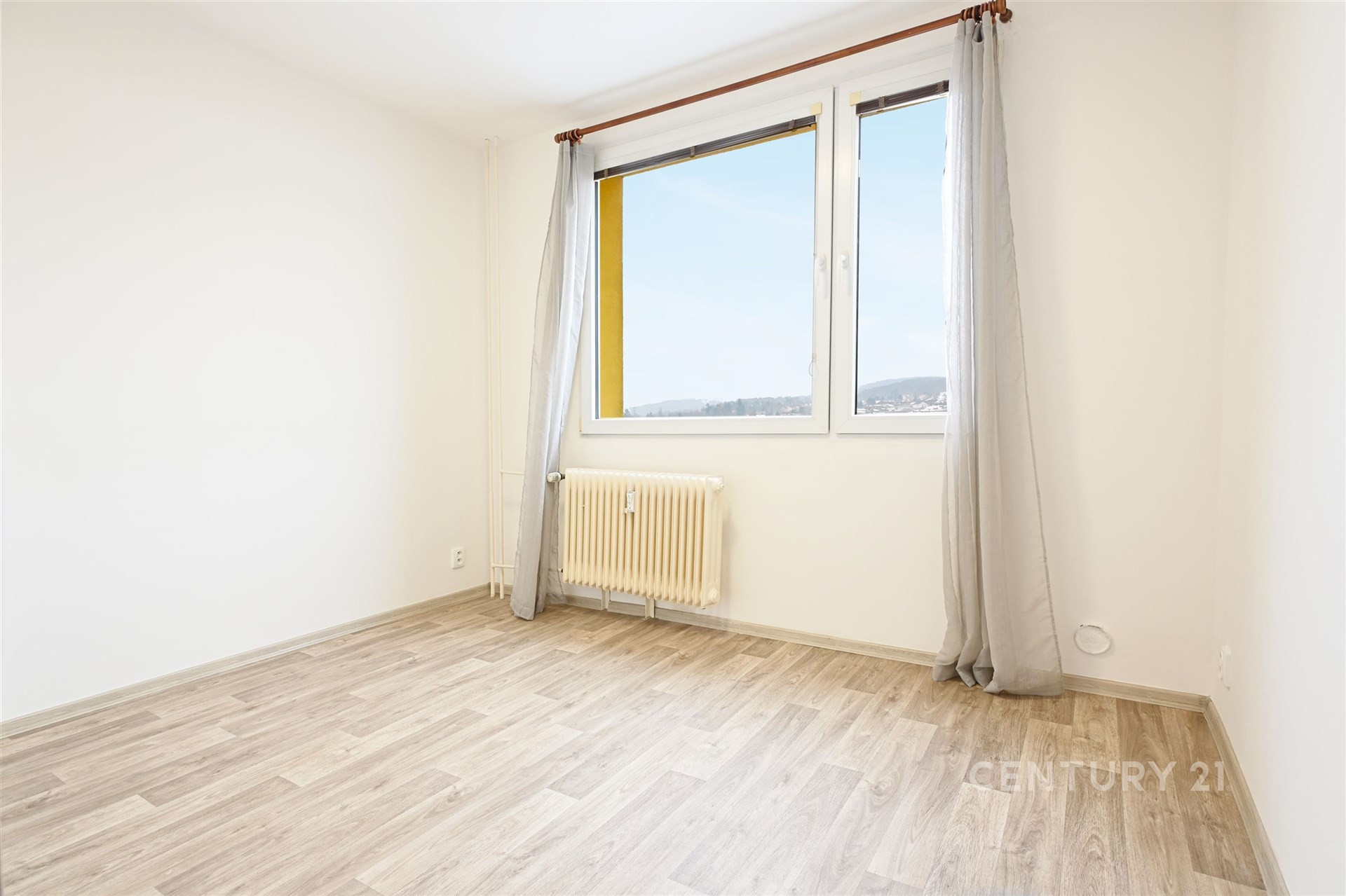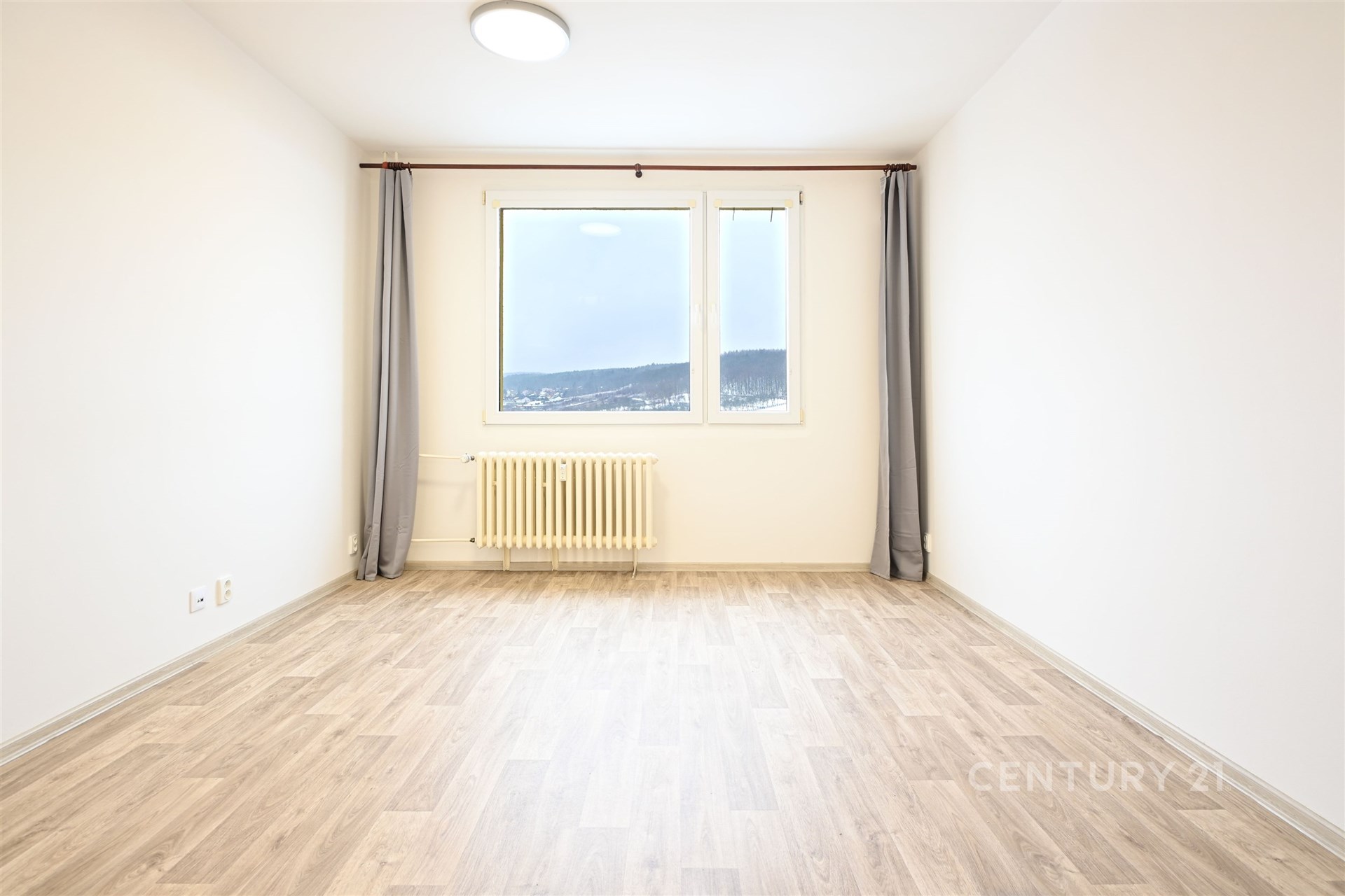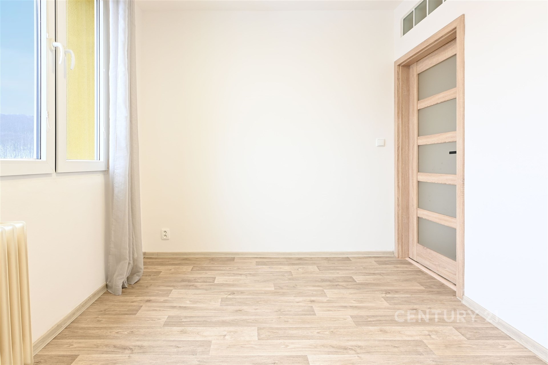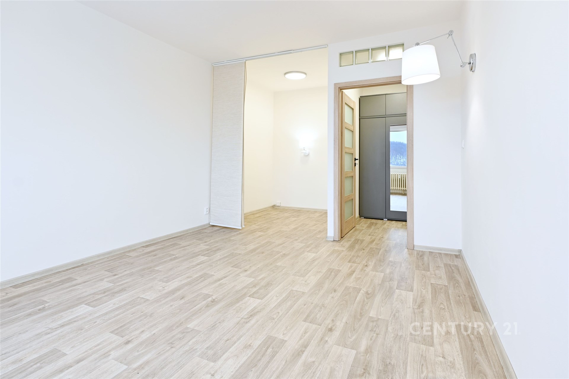 Nedávná rekonstrukce: Nové podlahy v dekoru dřeva, moderní interiérové dveře a vkusná výmalba. Vše voní novotou.
