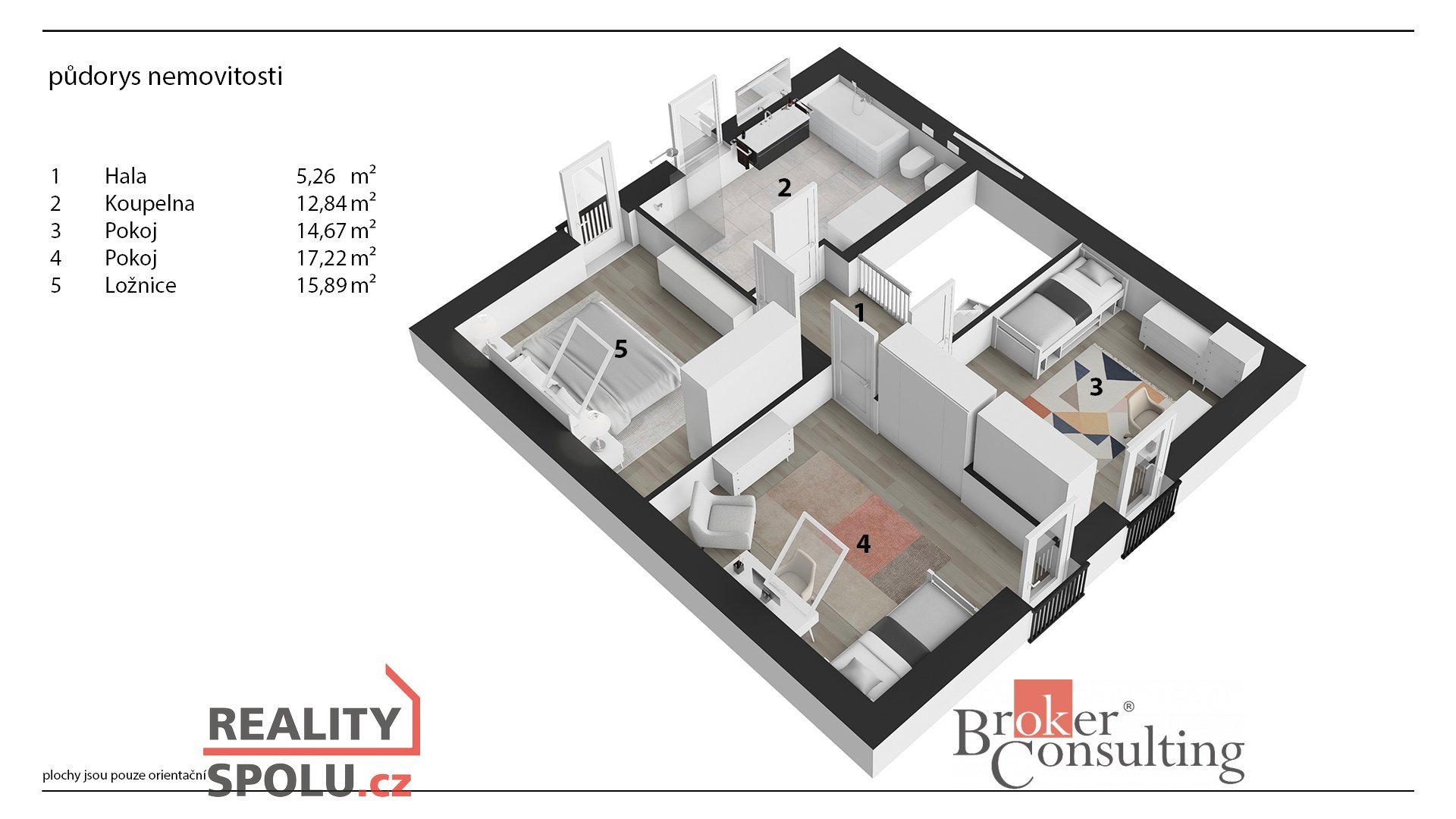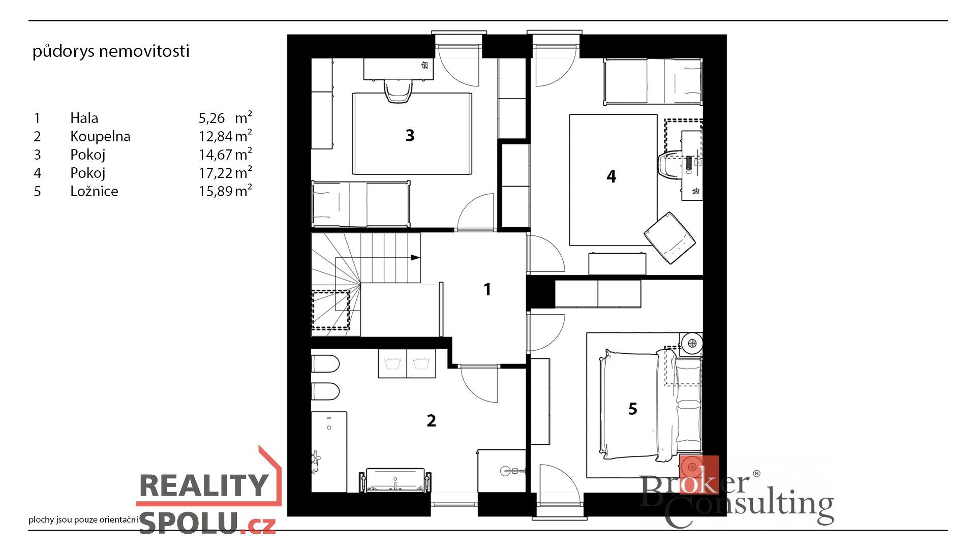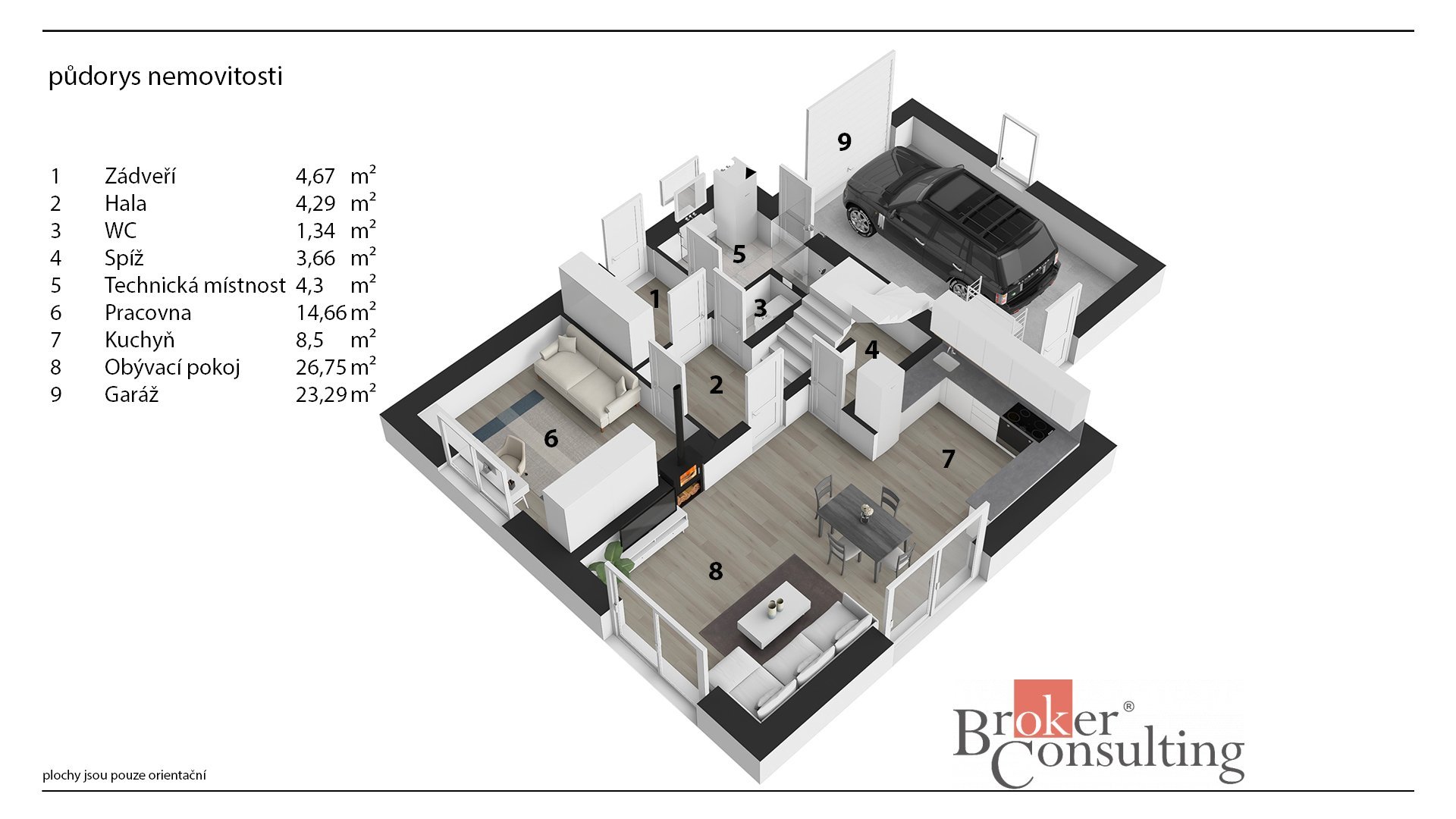 Uvedené výměry jsou orientační. Veškeré zveřejněné údaje obsažené v tomto inzerátu mají pouze informativní charakter a nejsou nabídkou ve smyslu § 1731 nebo § 1732 občanského zákoníku, ani se nejedná o veřejný příslib dle § 1733 občanského zákoníku.