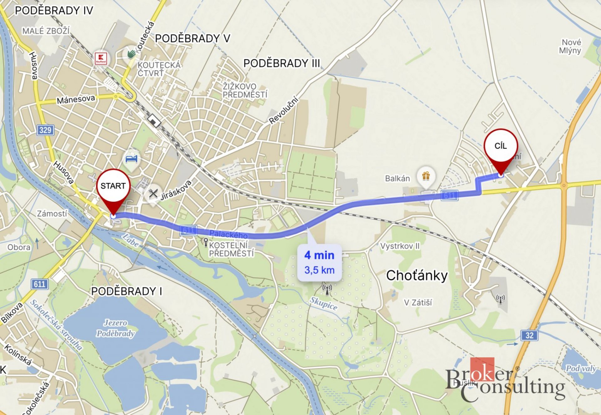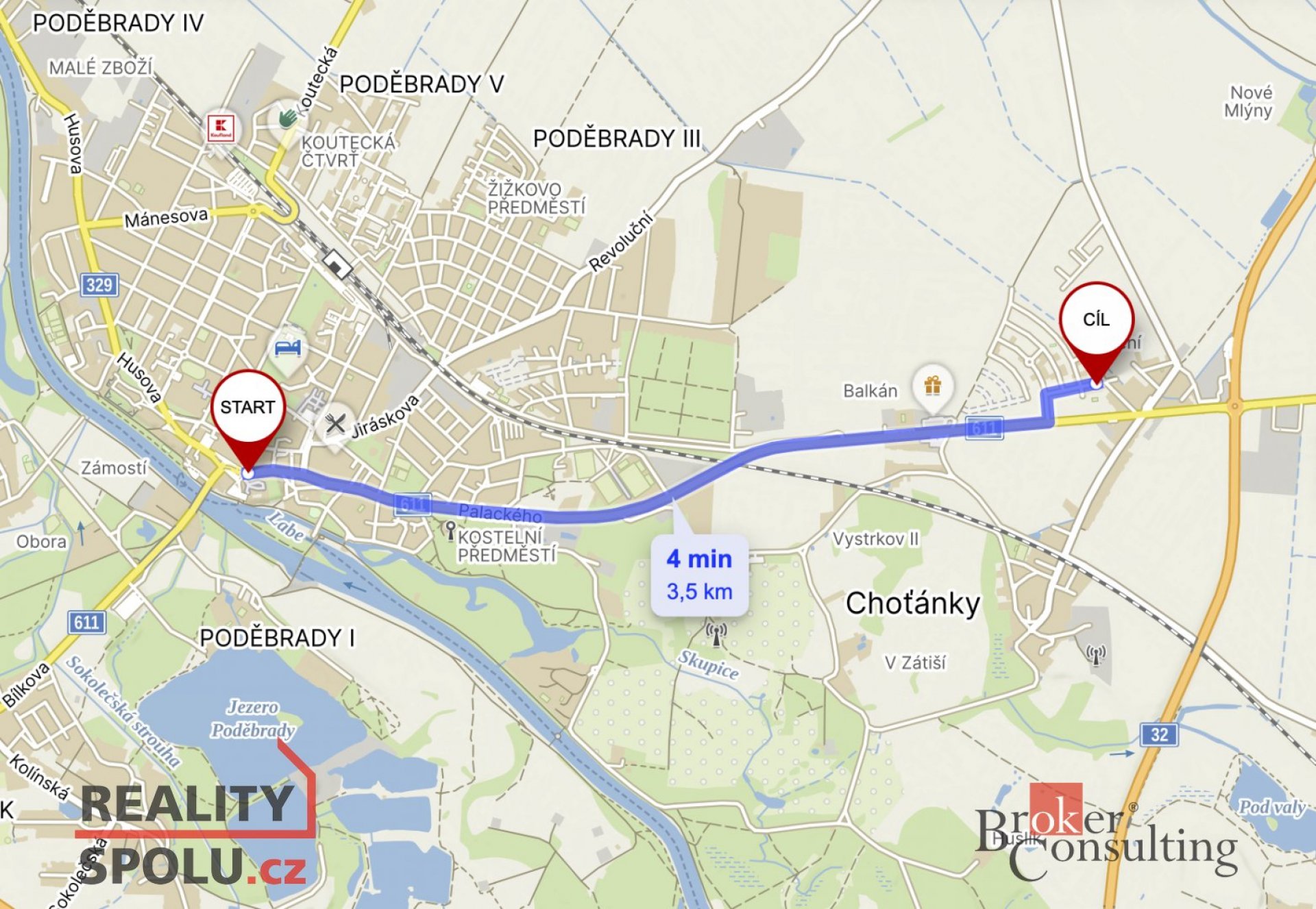 Poděbrady se nachází pouhé 4 minuty autem, či autobusem a do Prahy se dostanete za 25 minut po dálnici D11 na Centrum Černý Most nebo podobně do Hradce Králové.