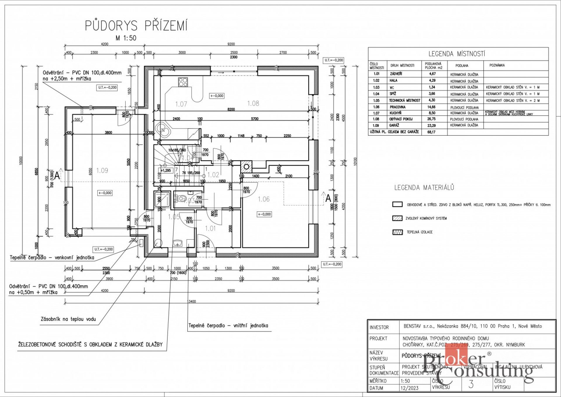 = 1 x pokoj, 1x obývací pokoj s 1x kuchyňský kout zde je jižní orientace, dvě francouzská okna, 1x technická místnost se sprchovým koutem, umyvadlem, samostatná toaleta s umyvadlem, komora u kuchyně, chodba a schodiště, prostorná garáž 23,29 m² s možností dodělání dílenského koutu, nad celou plochou garáže se nachází půda, kde je uložena rekuperace a zbytek prostoru je vhodné využít pro uskladnění věcí