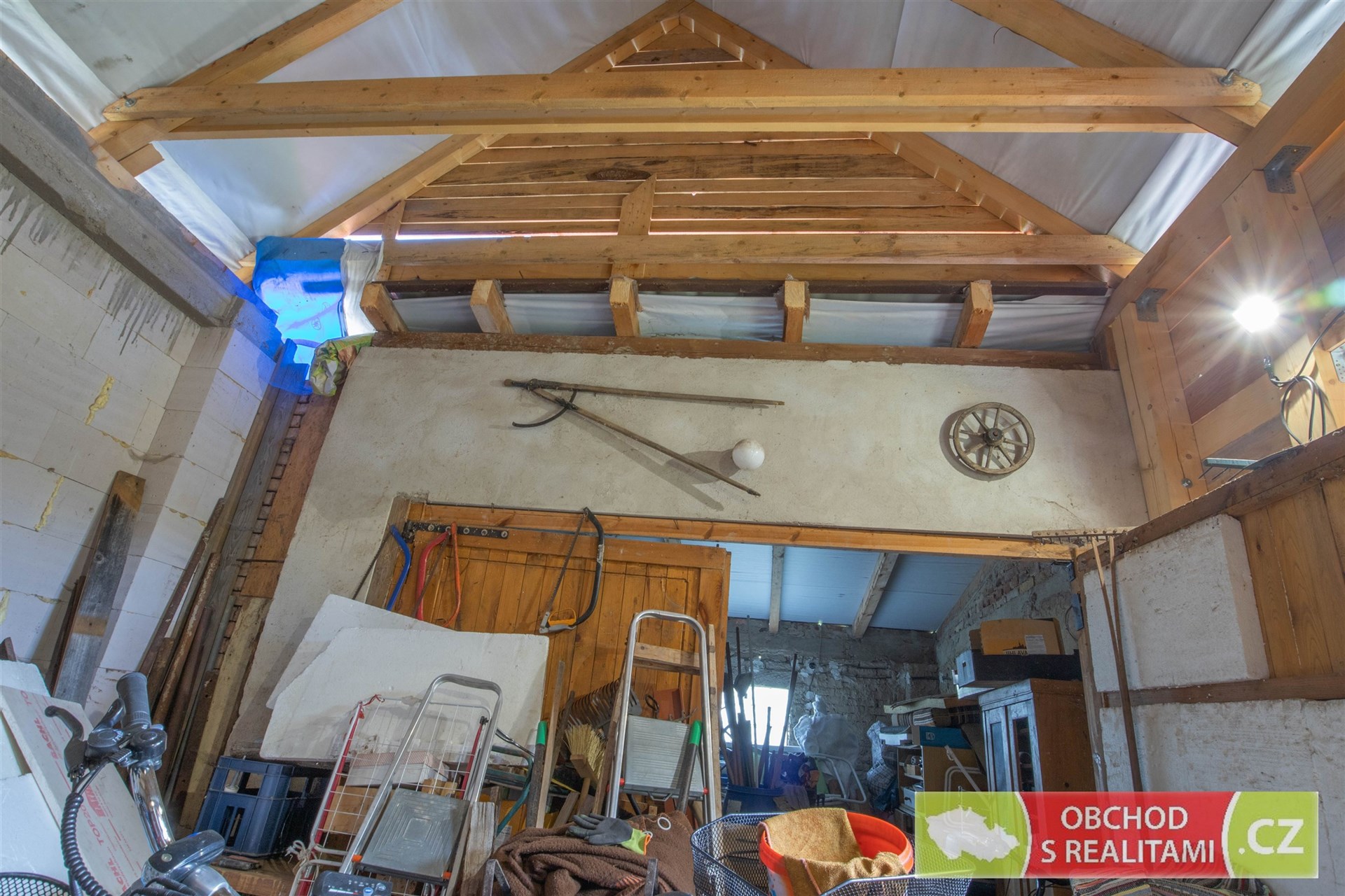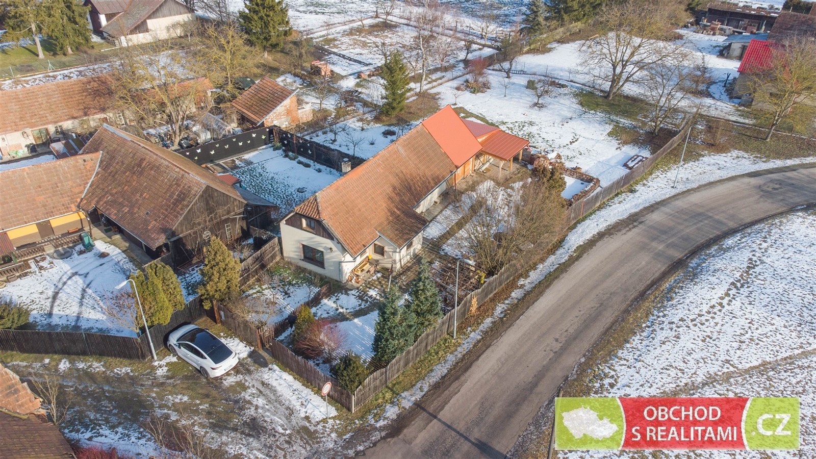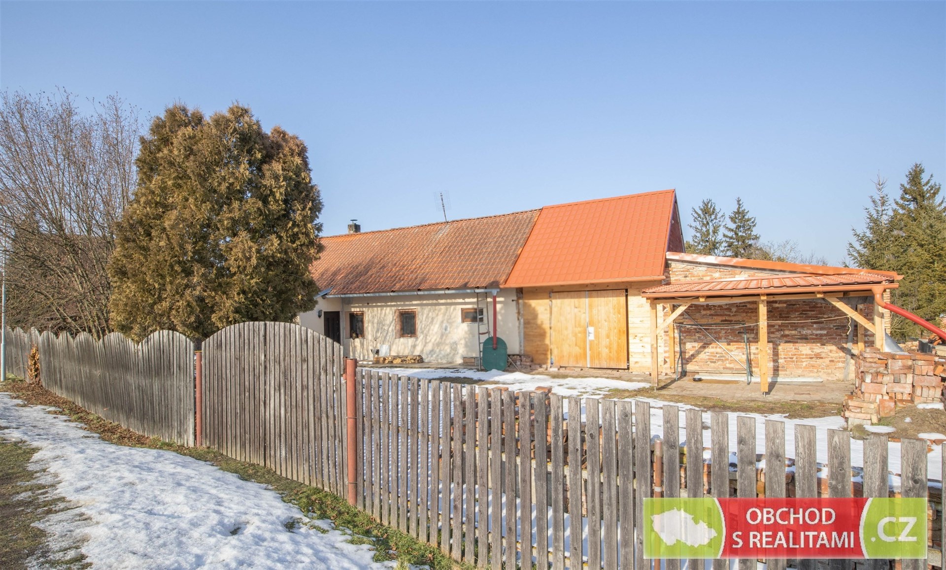 Rodinný dům nabízí dispozici 2+1, malý sklep, volnou půdu (dosud bez vestavby pokojů), stodolu s velkými vraty (například možnost parkování nebo skladování), velkou dílnu a venkovní kryté parkovací stání.