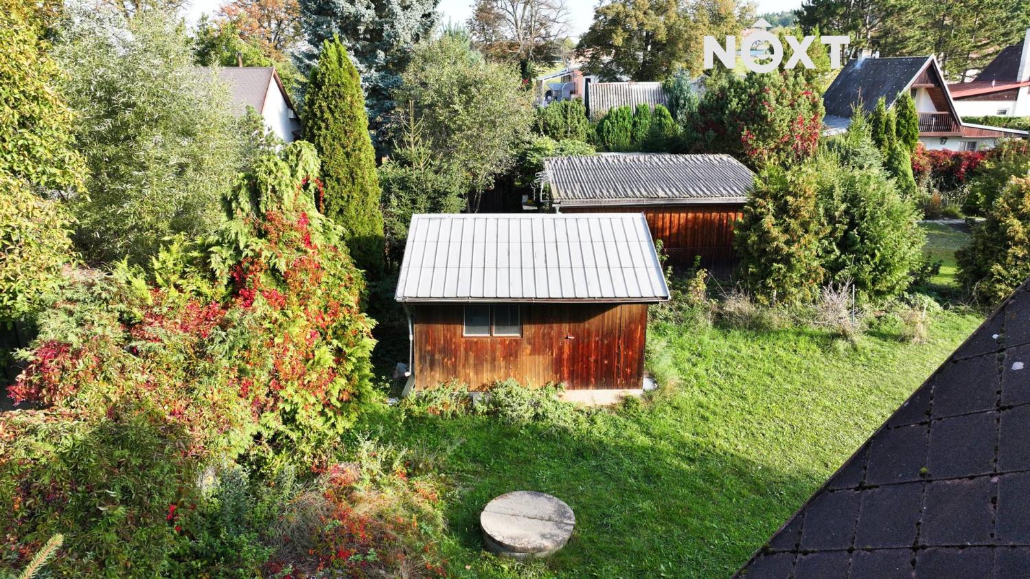 Velkou předností je rozlehlý pozemek o výměře 1 448 m², který zajišťuje soukromí i potenciál do budoucna. Na pozemku se nachází ovocné stromy (jabloň, švestka, ořešák) a útulné venkovní posezení hned vedle chaty.