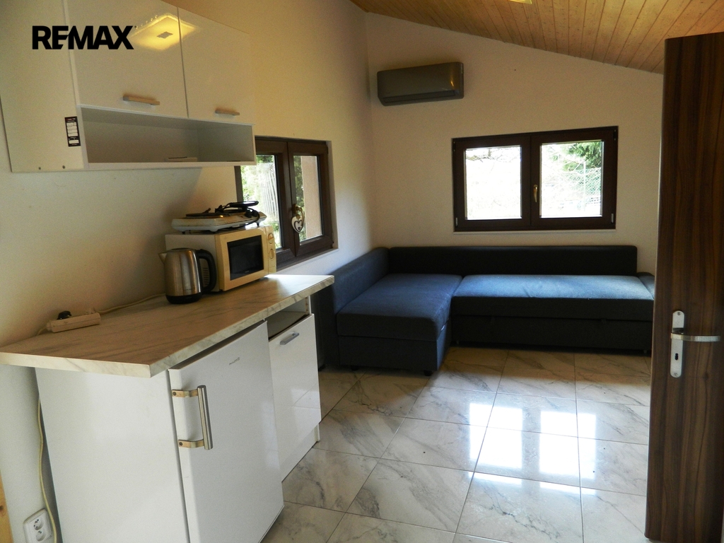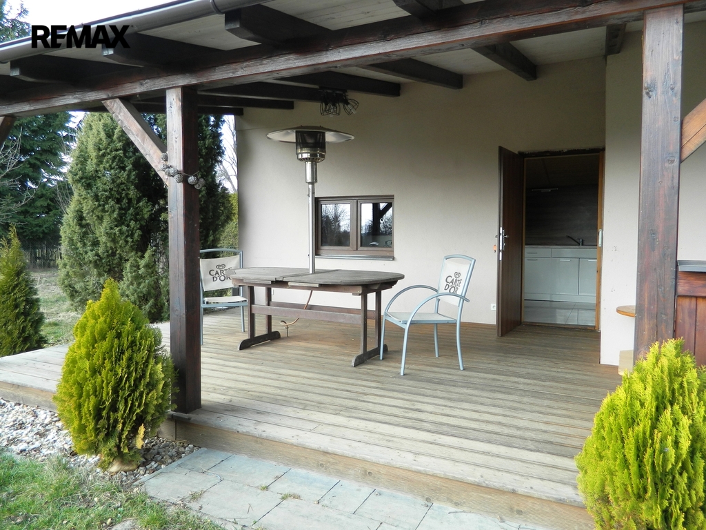 Velkou předností je rozlehlý pozemek o výměře 1.524 m², který nabízí i potenciál pro případnou další výstavbu (zastavitelnost pozemku je 80 m2, co se týče stavby, další zastavěná plocha může mít dalších 120 m2.). Zděná přízemní chata s velkou terasou je postavena v zadní části pozemku, čímž skýtá dostatek soukromí. Nahlédněte i na fotografie a situační plánek interiéru. Dispozice chaty je 2 + kk, včetně WC a koupelny se sprchovým koutem. Chata je částečně podsklepena, ve sklepě se nachází elektrický bojler na ohřev 80 litrů vody a čerpadlo na vodu. Teplotu interiéru lze regulovat nástěnnou klimatizační jednotkou (vytápění i chlazení) napojenou na tepelné čerpadlo vzduch-vzduch. Alternativně je možno používat přímotopy. Voda je čerpána z vlastní 6 metrů hluboké studny. Odpady jsou svedeny do septiku, z něhož jde voda do pískové filtrace. V chatě je k dispozici 240 i 380 V. Po dohodě s kupujícím je možné ponechat na místě vybavení a zařízení.