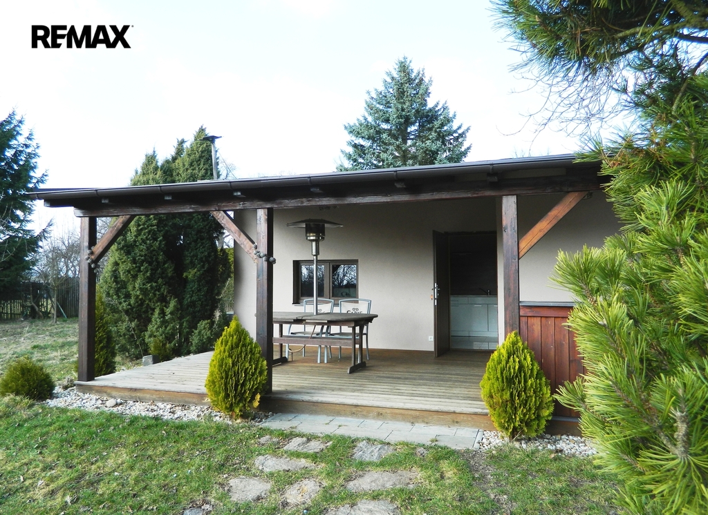 Prodej nízkoenergetické zděné chaty s pergolou 65 m2 a zahradou 1524 m2 v Chotovinách.