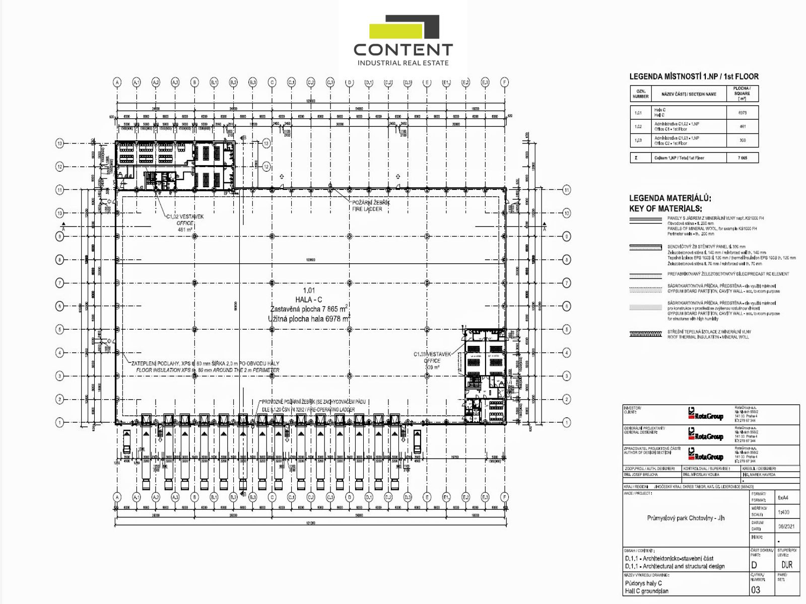 - rozloženo do 3 hal o velikosti cca 7800 m², které jsou možné lze dělit na menší jednotky