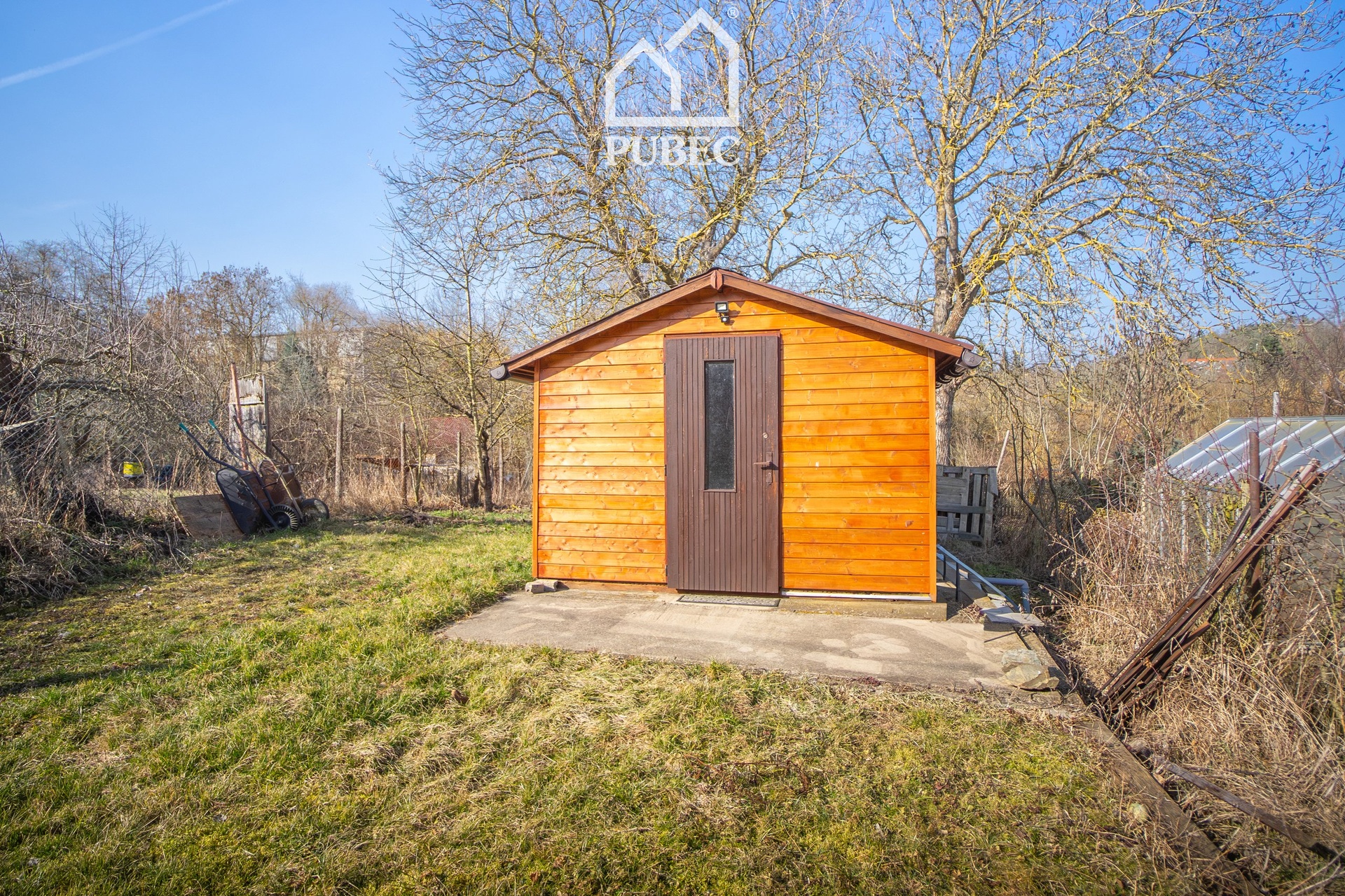 Bonus: Dřevěná chatka s elektřinou (13 m² užitné plochy) – perfektní jako letní pokoj pro hosty nebo domácí kancelář.